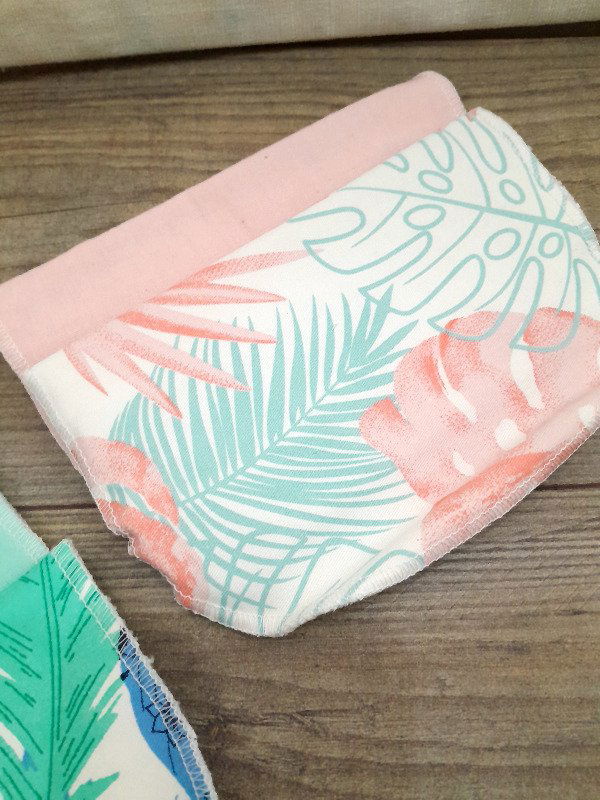 • 2 Toallitas realizadas en gabardina de algodón y capa de toalla de microfibra.