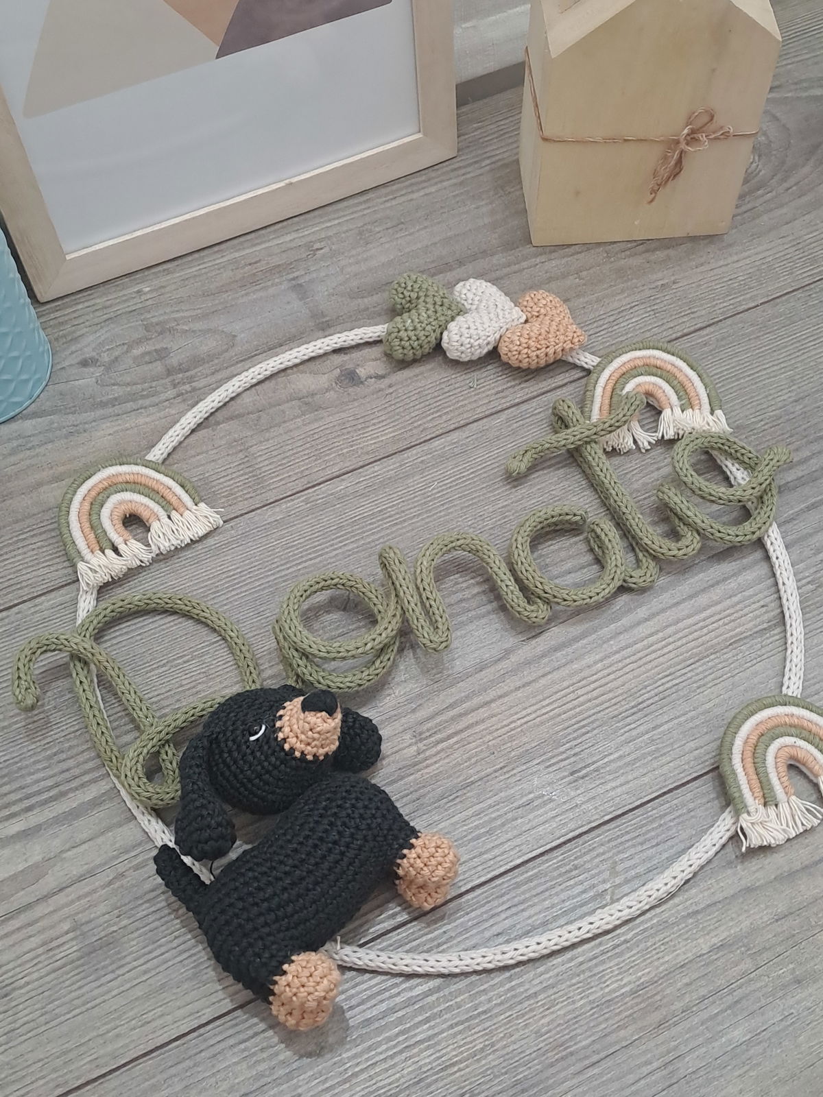 Con decoraciones (3 corazones, 3 arcoiris y 1 animalito