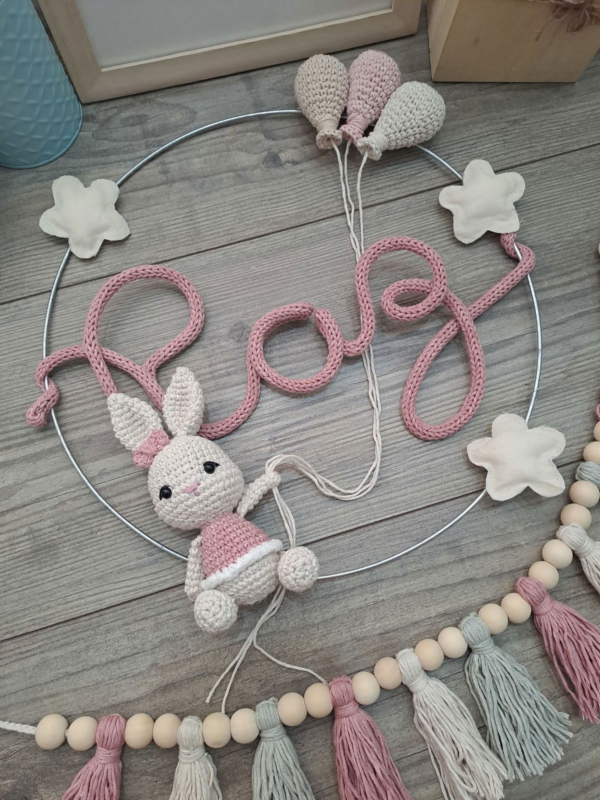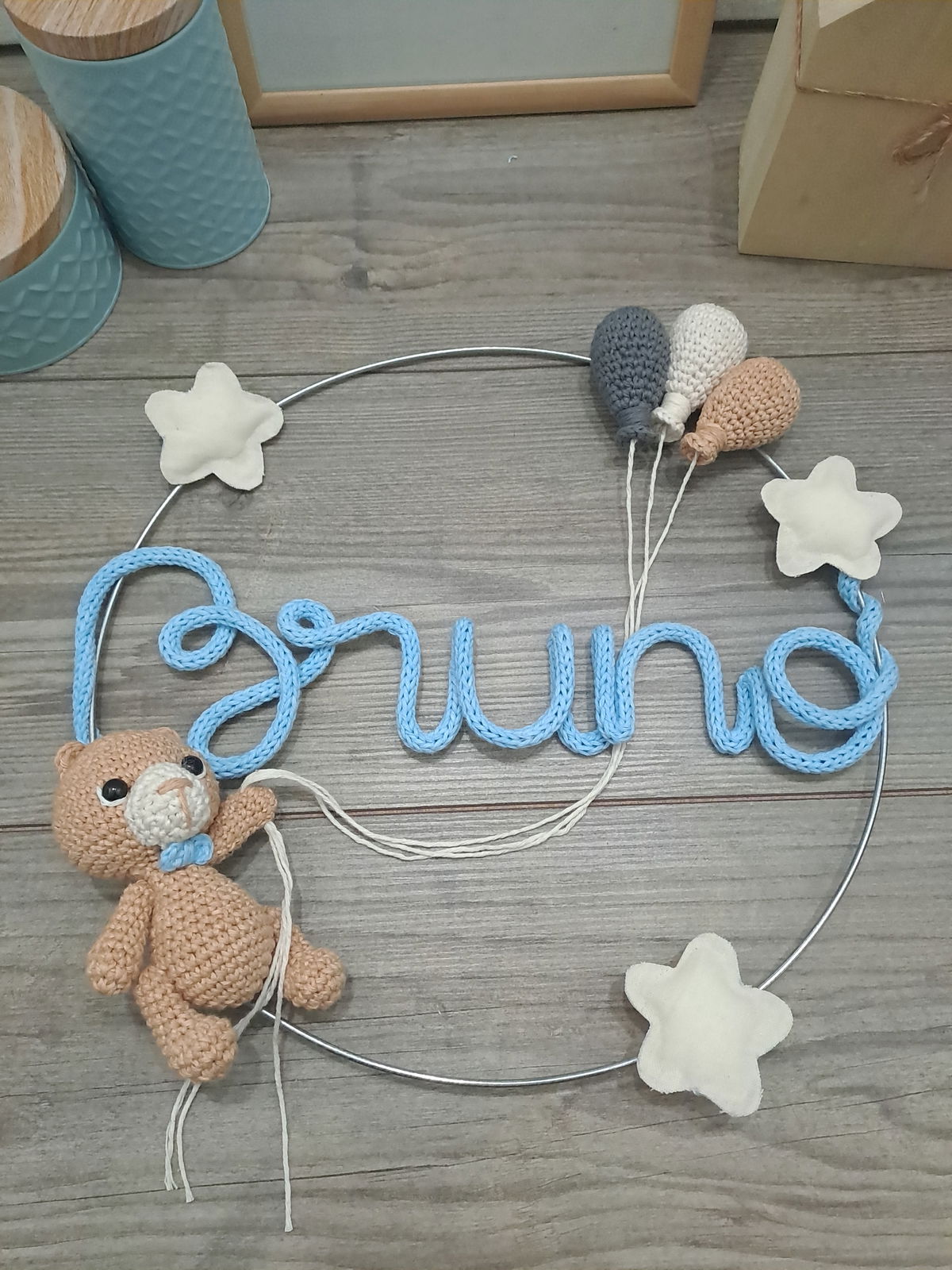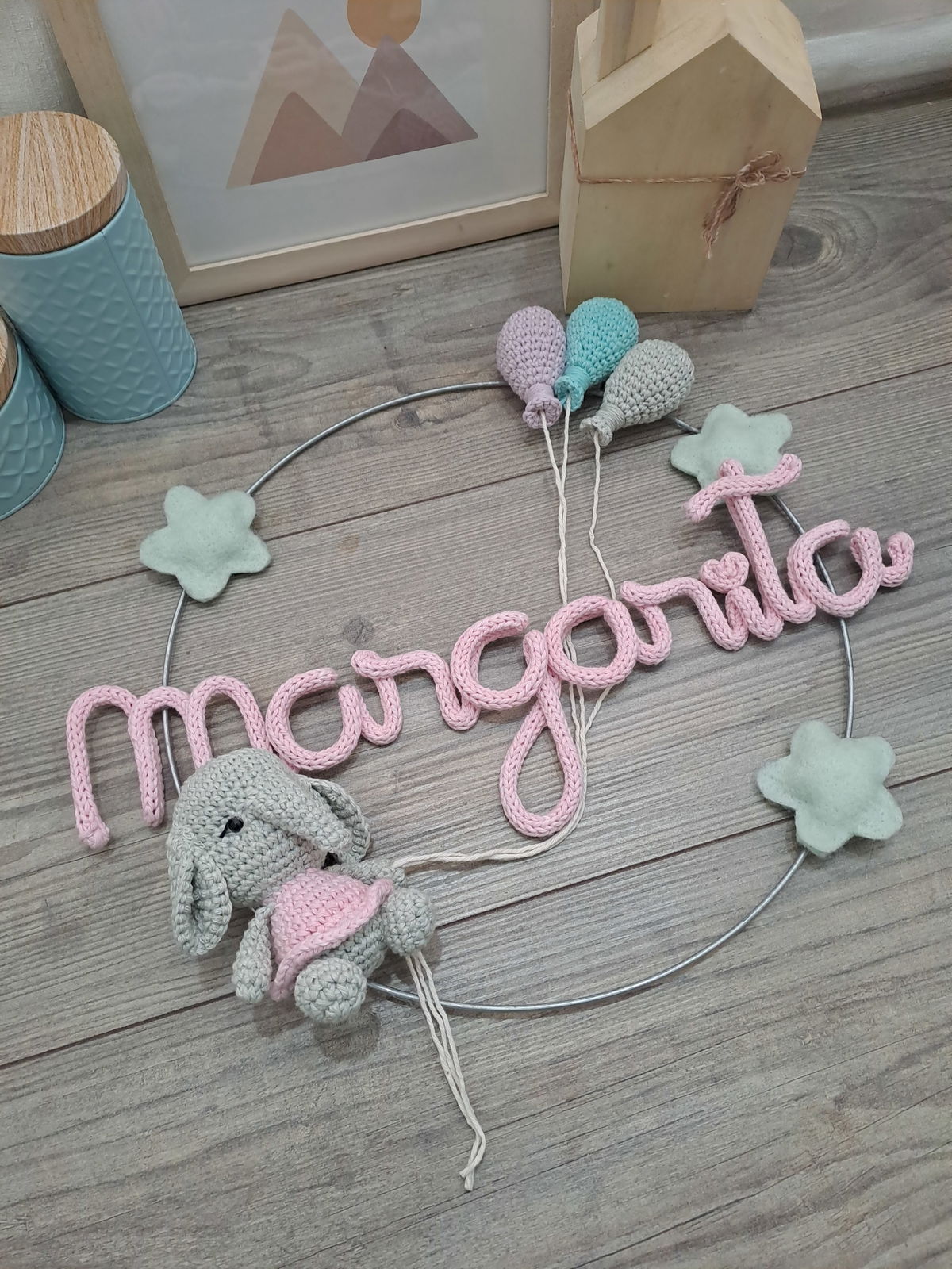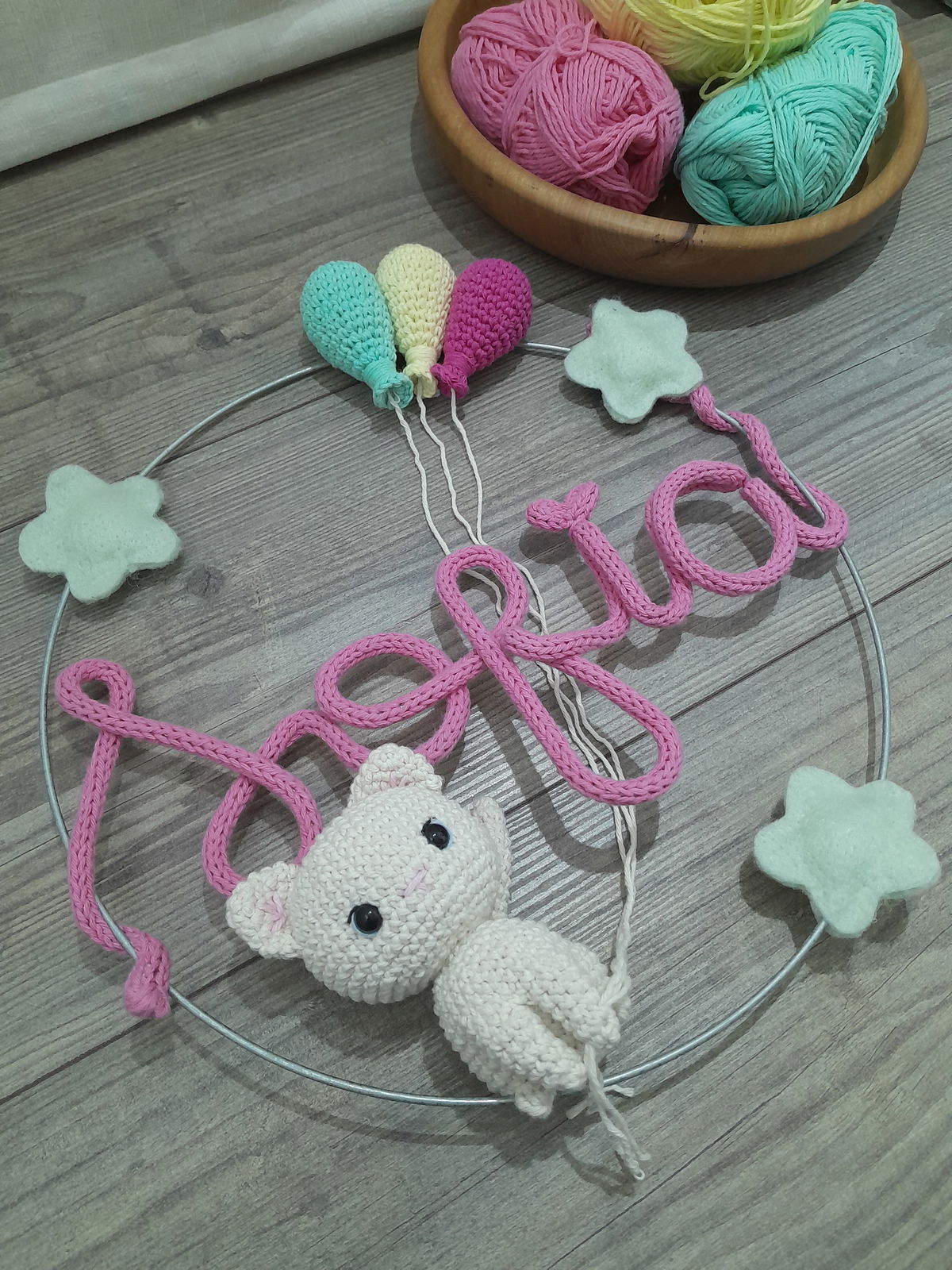 Nombre en aro con muñeco y globos