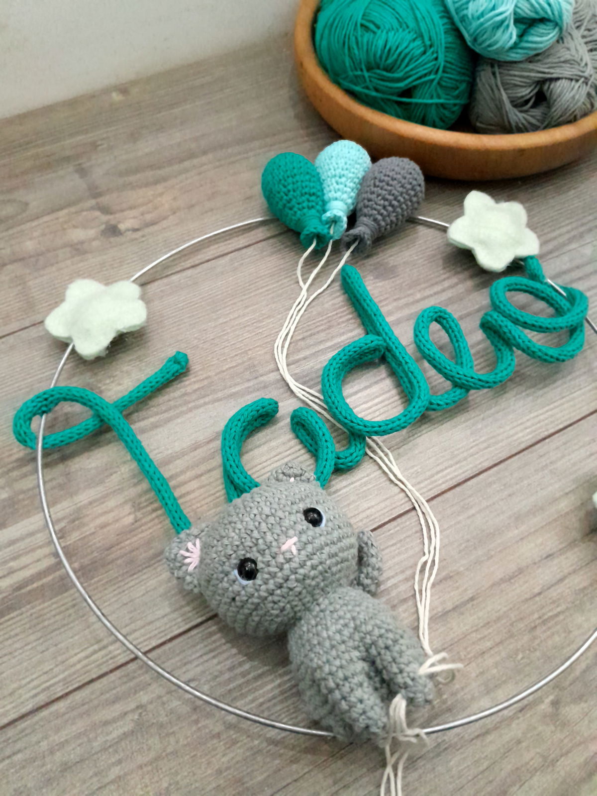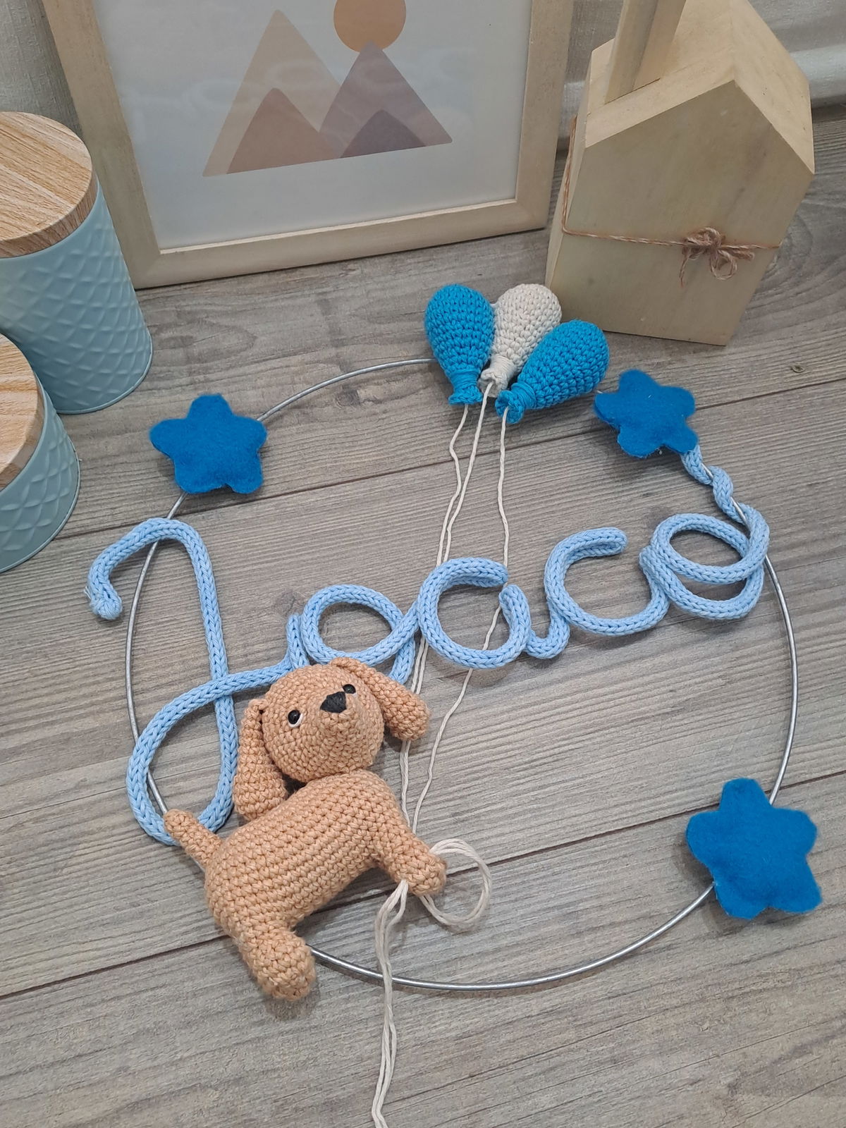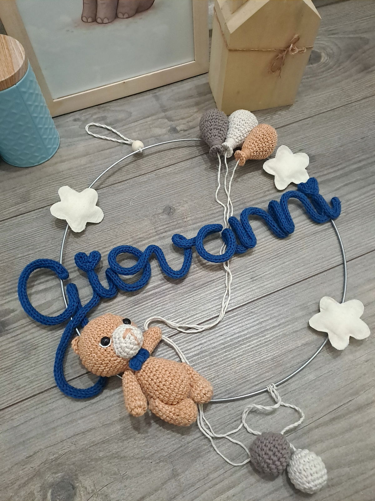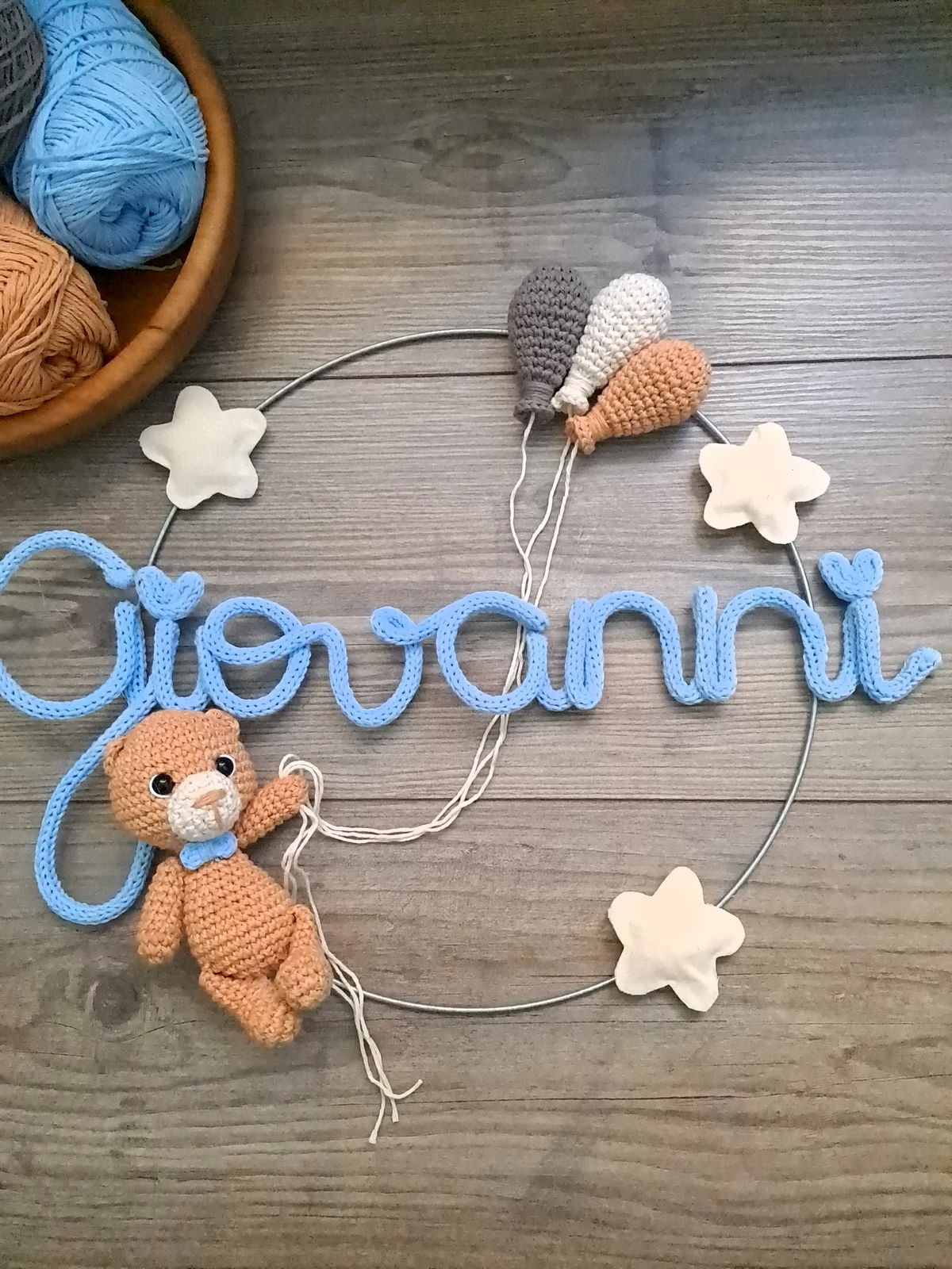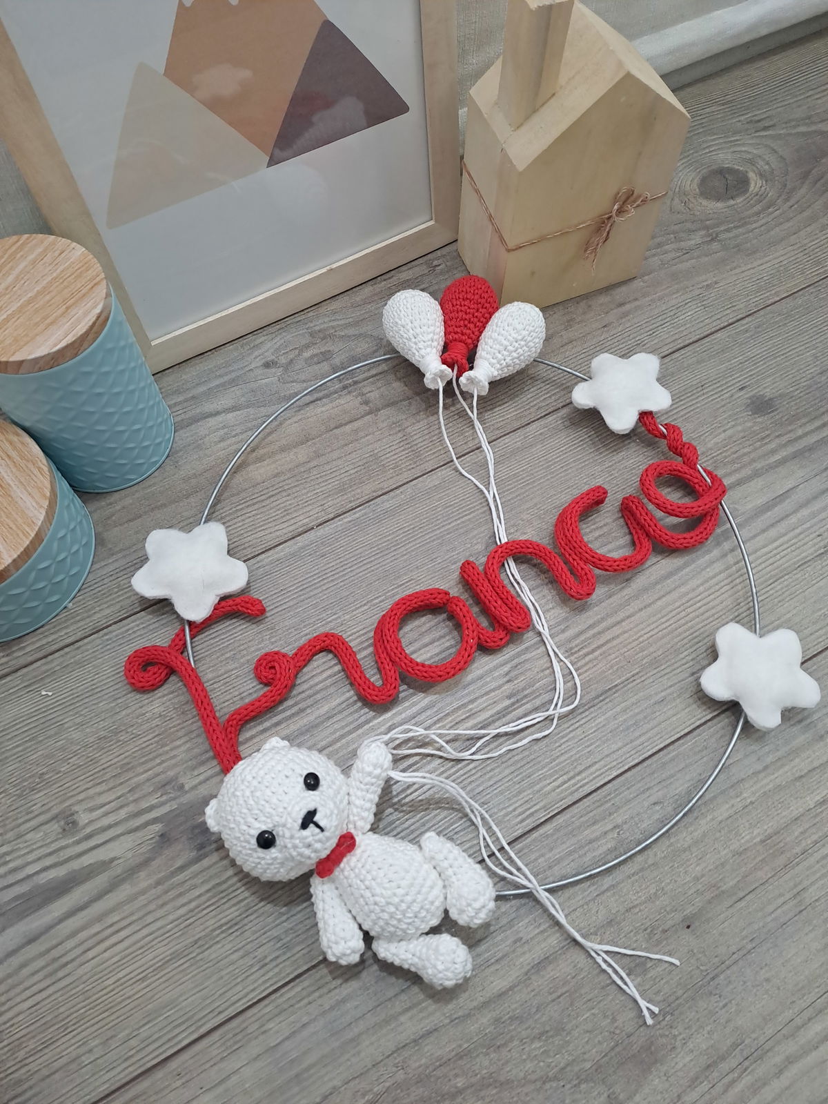 Nombre en aro con muñeco y globos