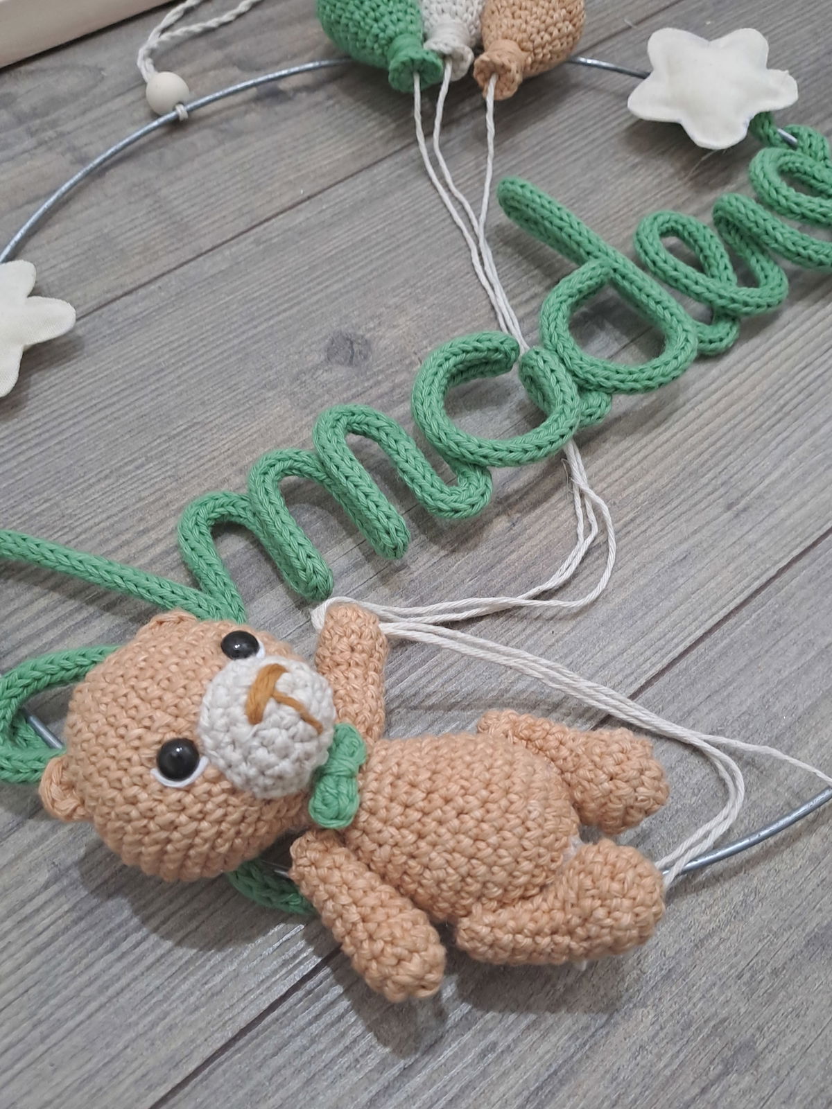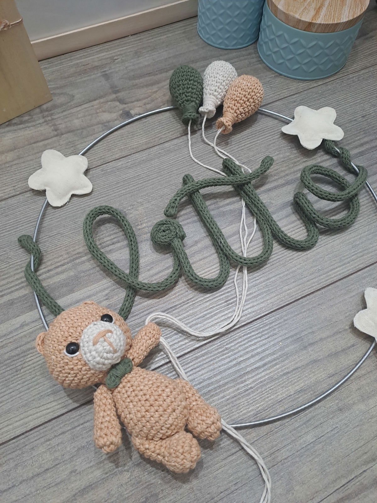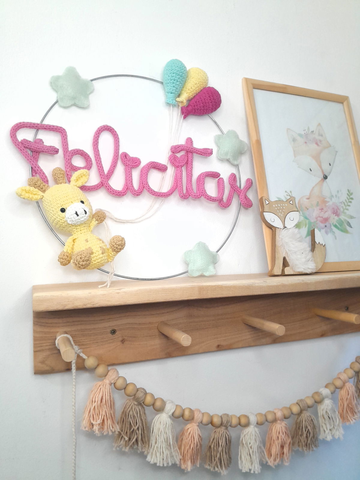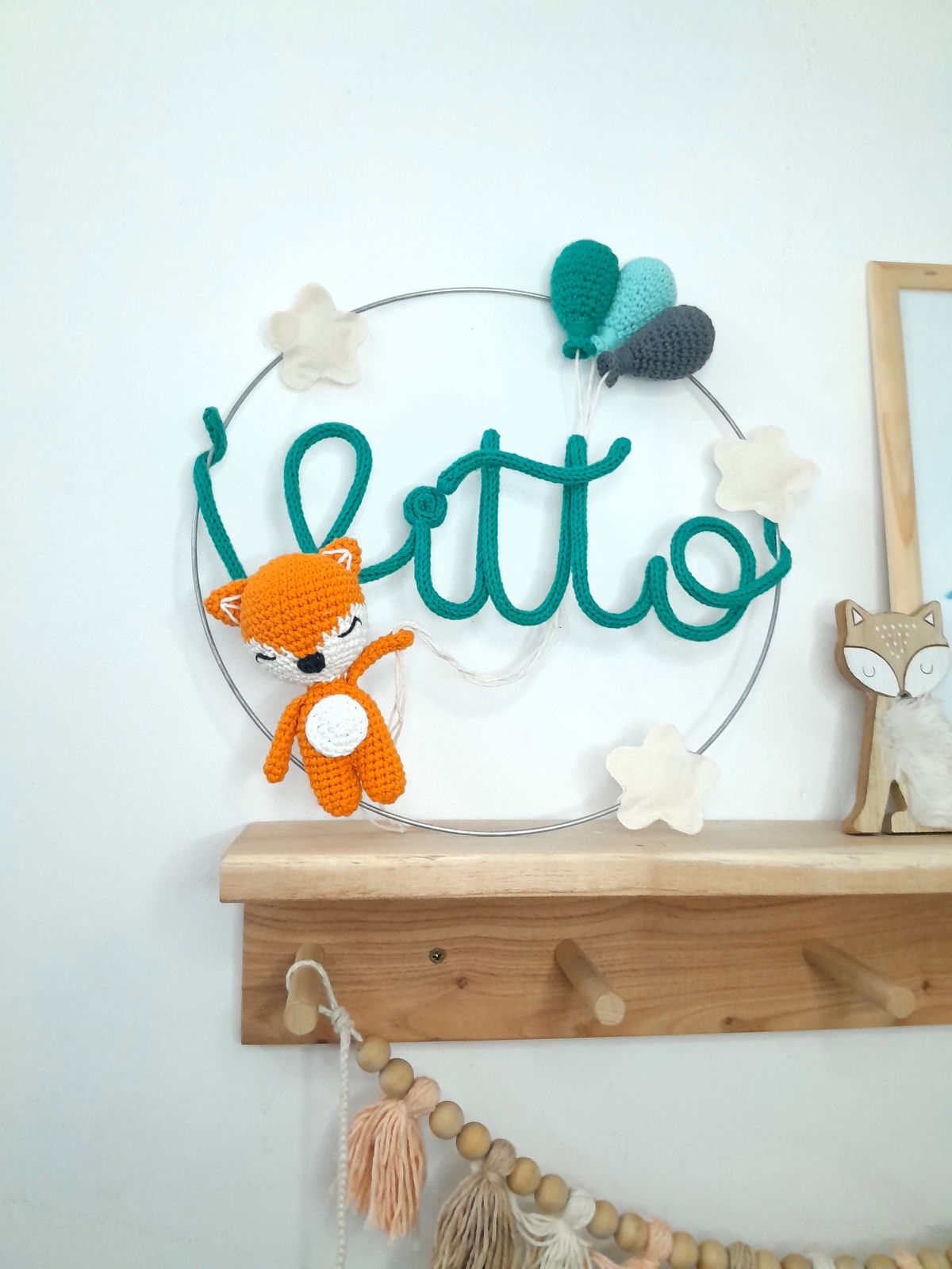 Colores a elección. Para las estrellas los colores disponibles son: verde agua, celeste, natural, rosa bebé, fucsia, amarillo patito, turquesa o violeta.