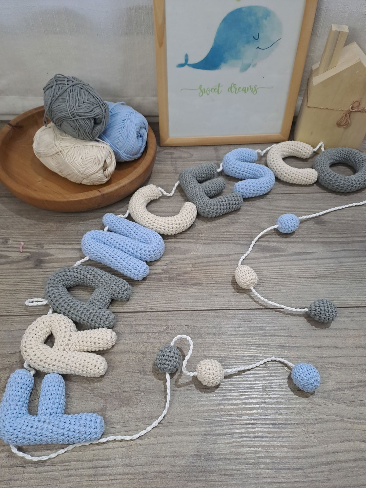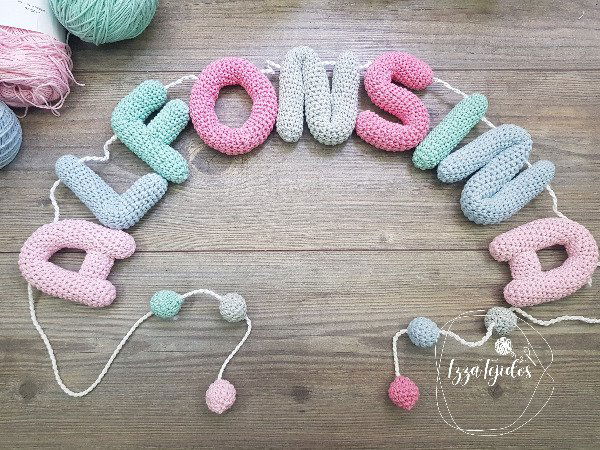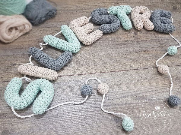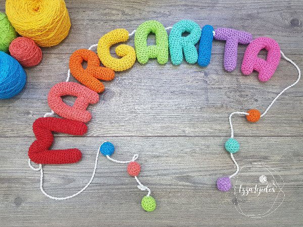Guirnalda con nombre tejido a mano de 9 Letras.