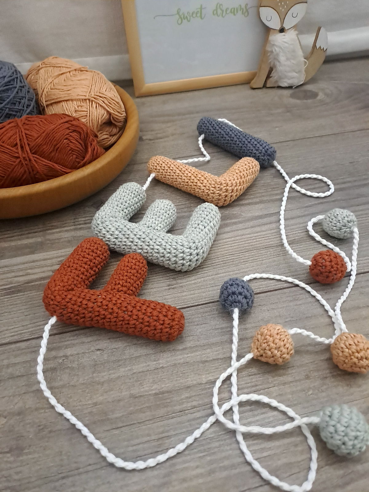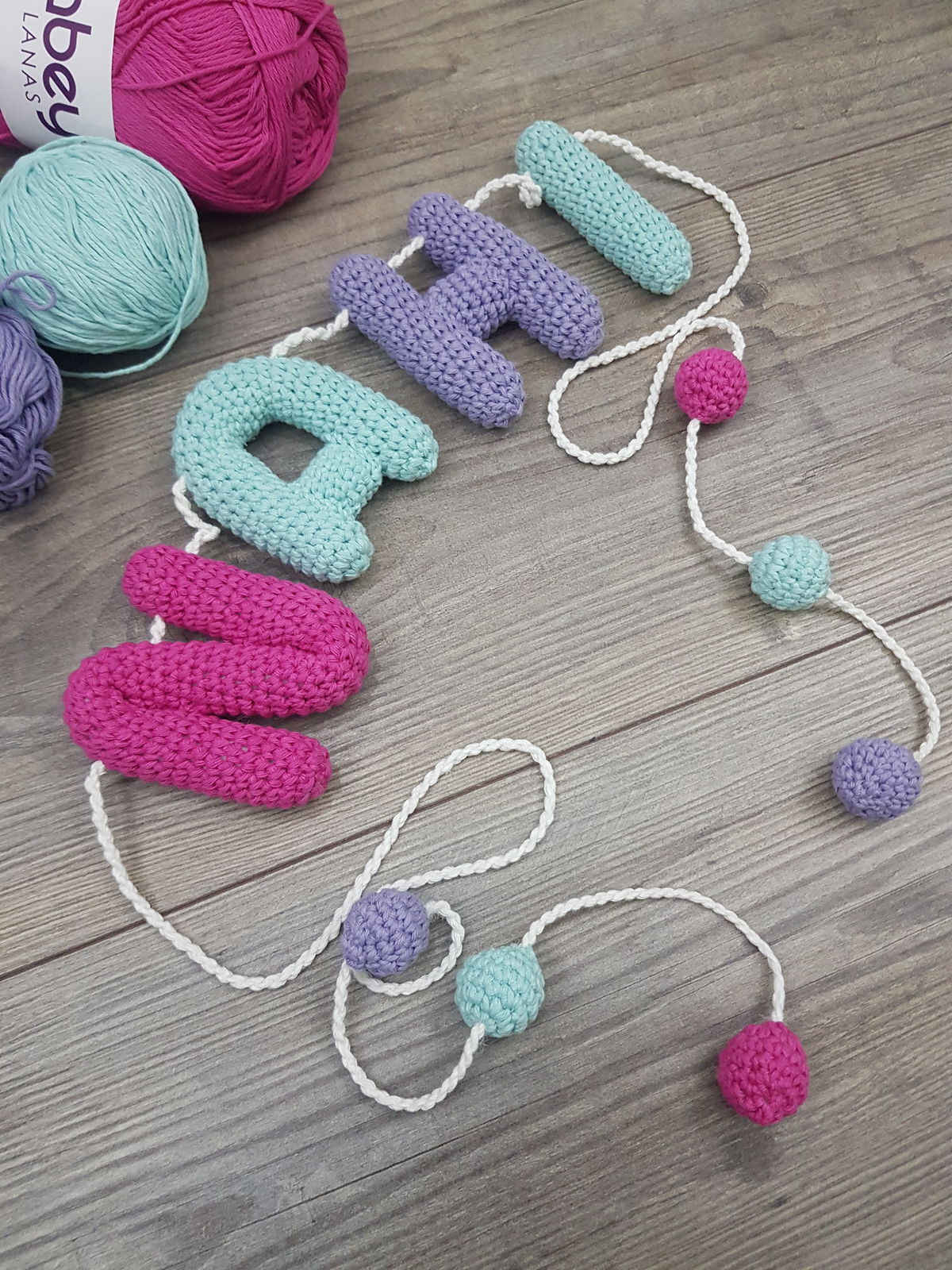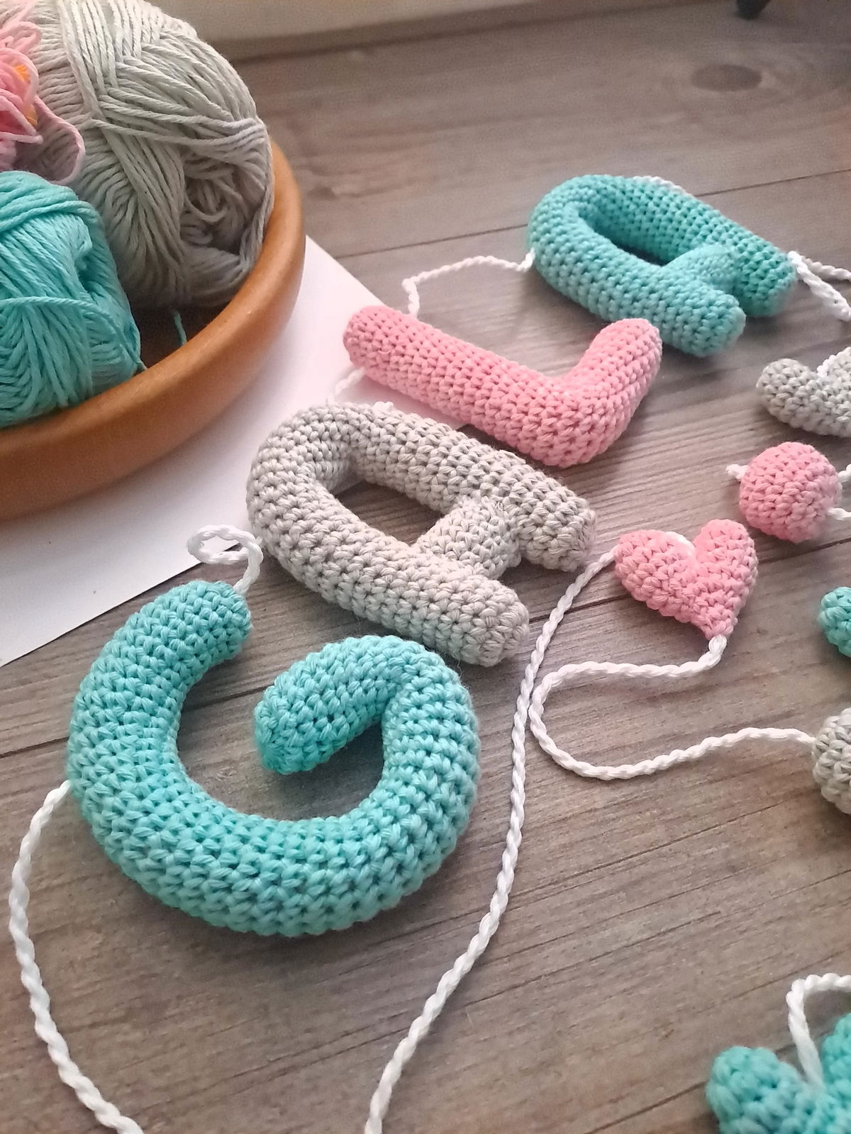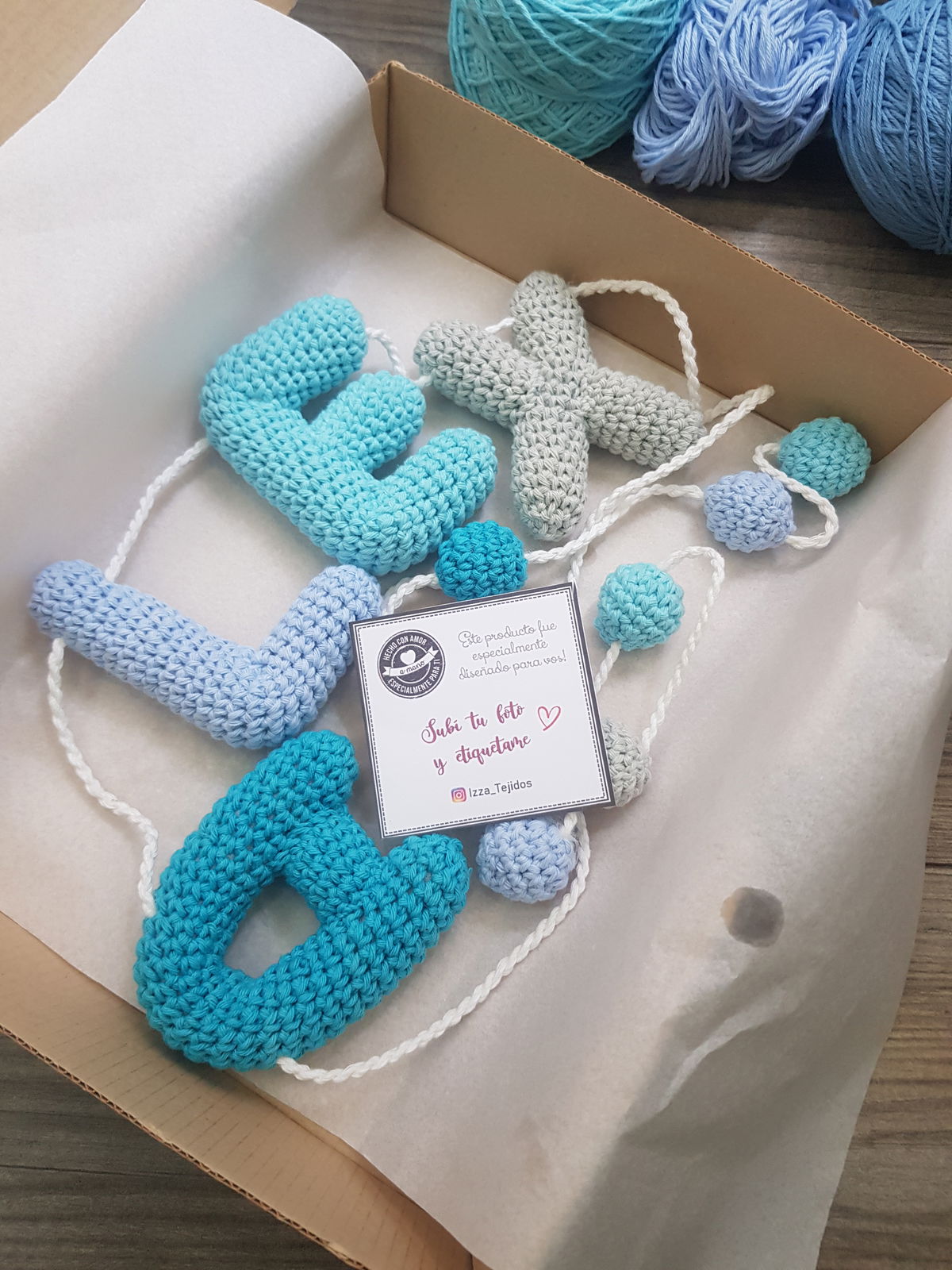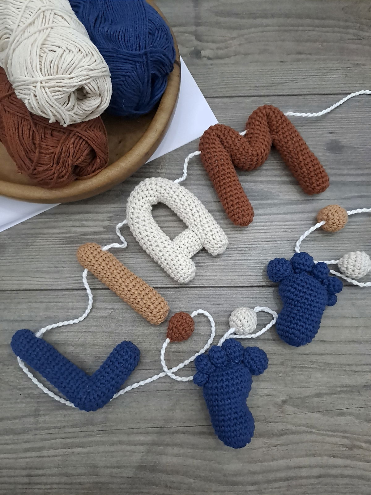 Guirnalda con nombre tejido a mano de 4 Letras.