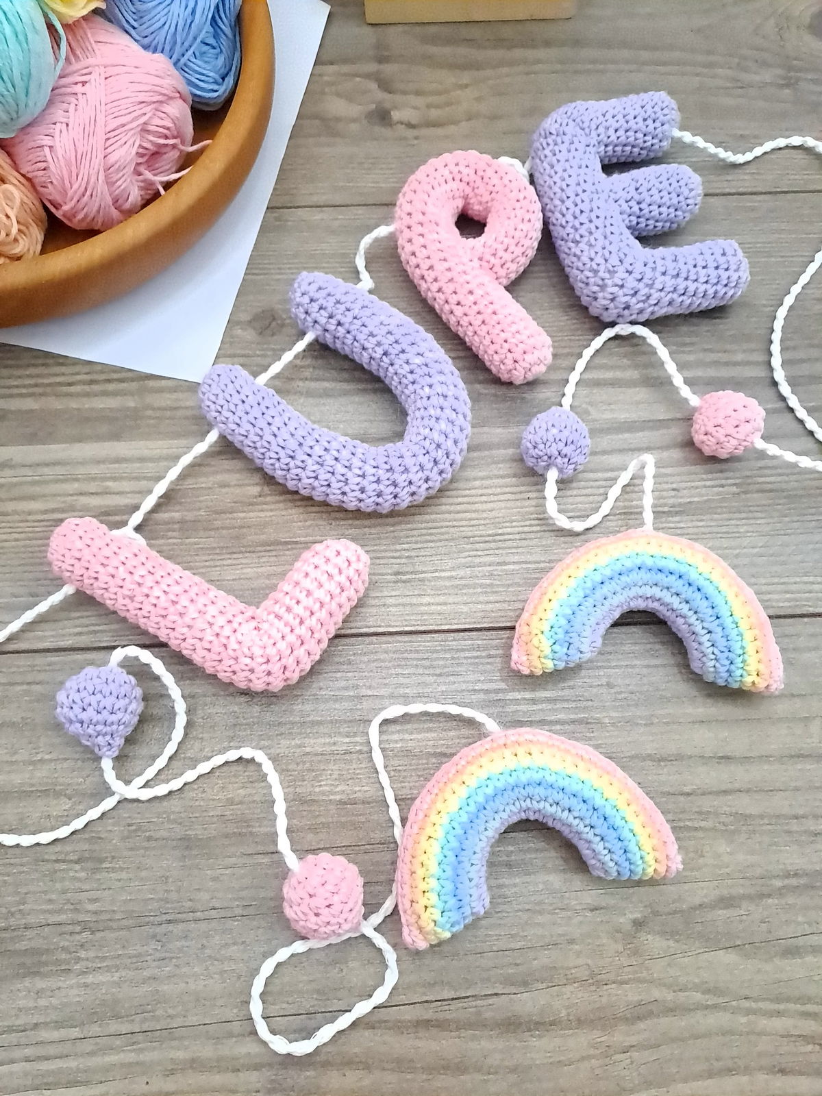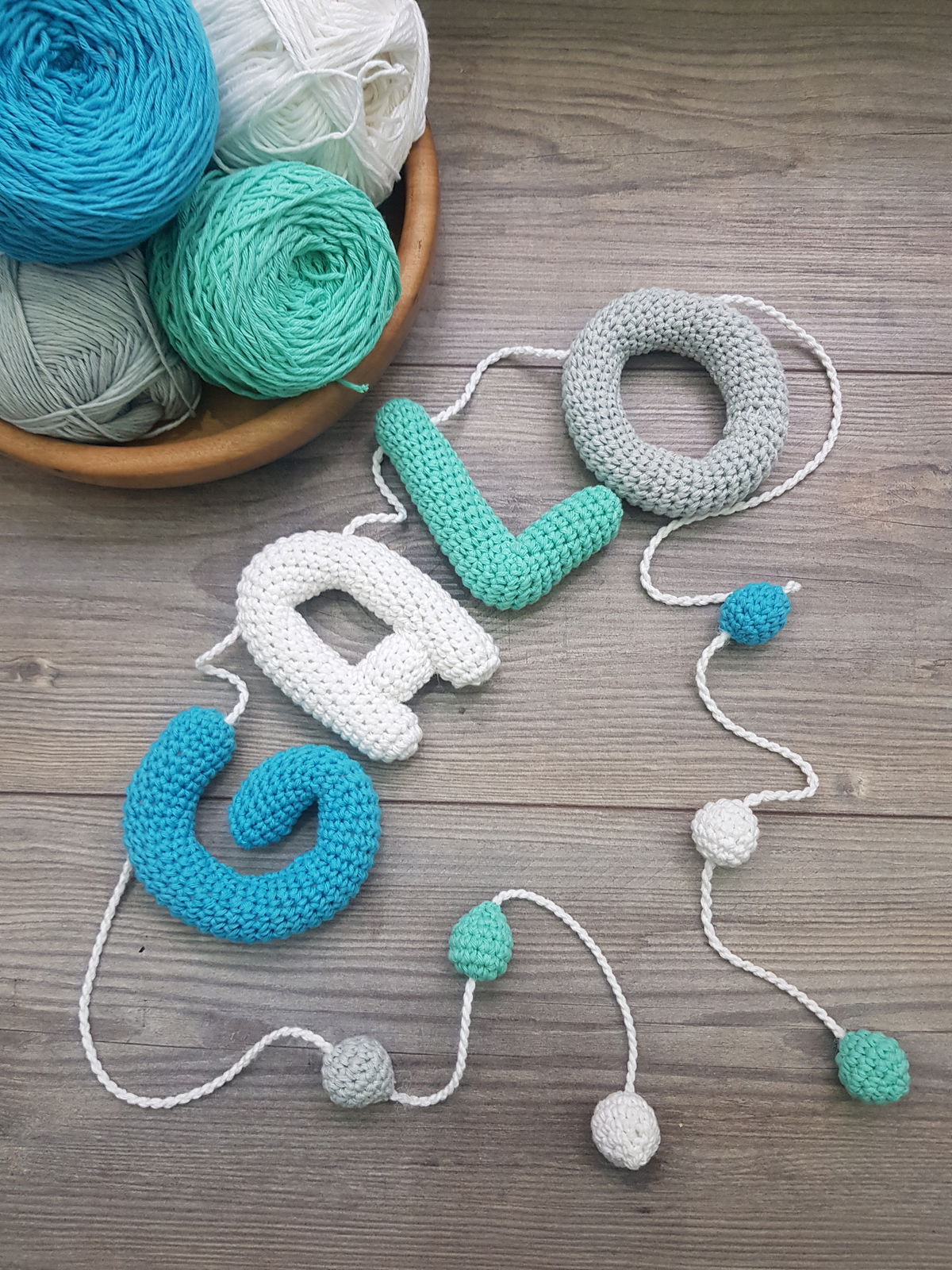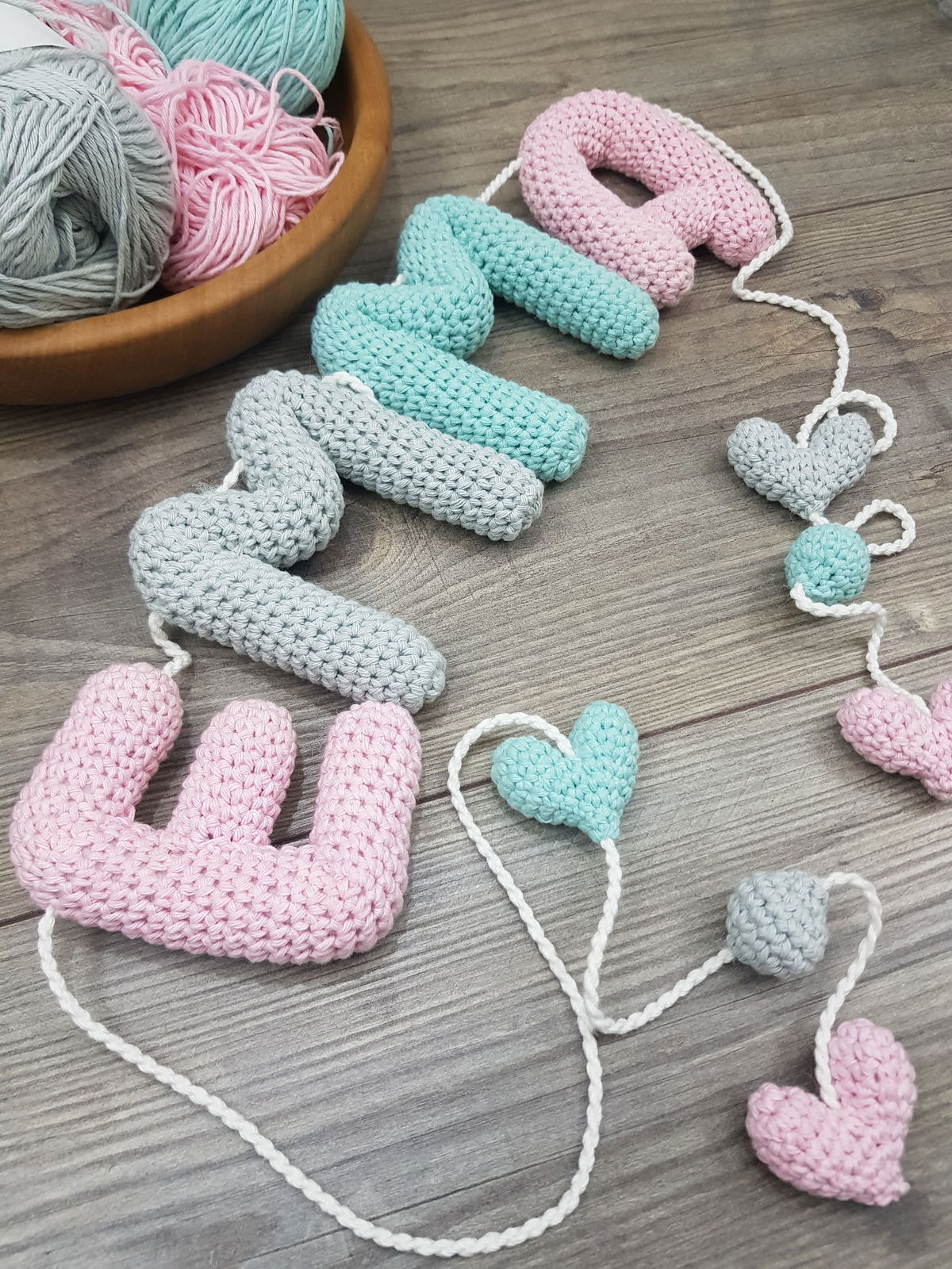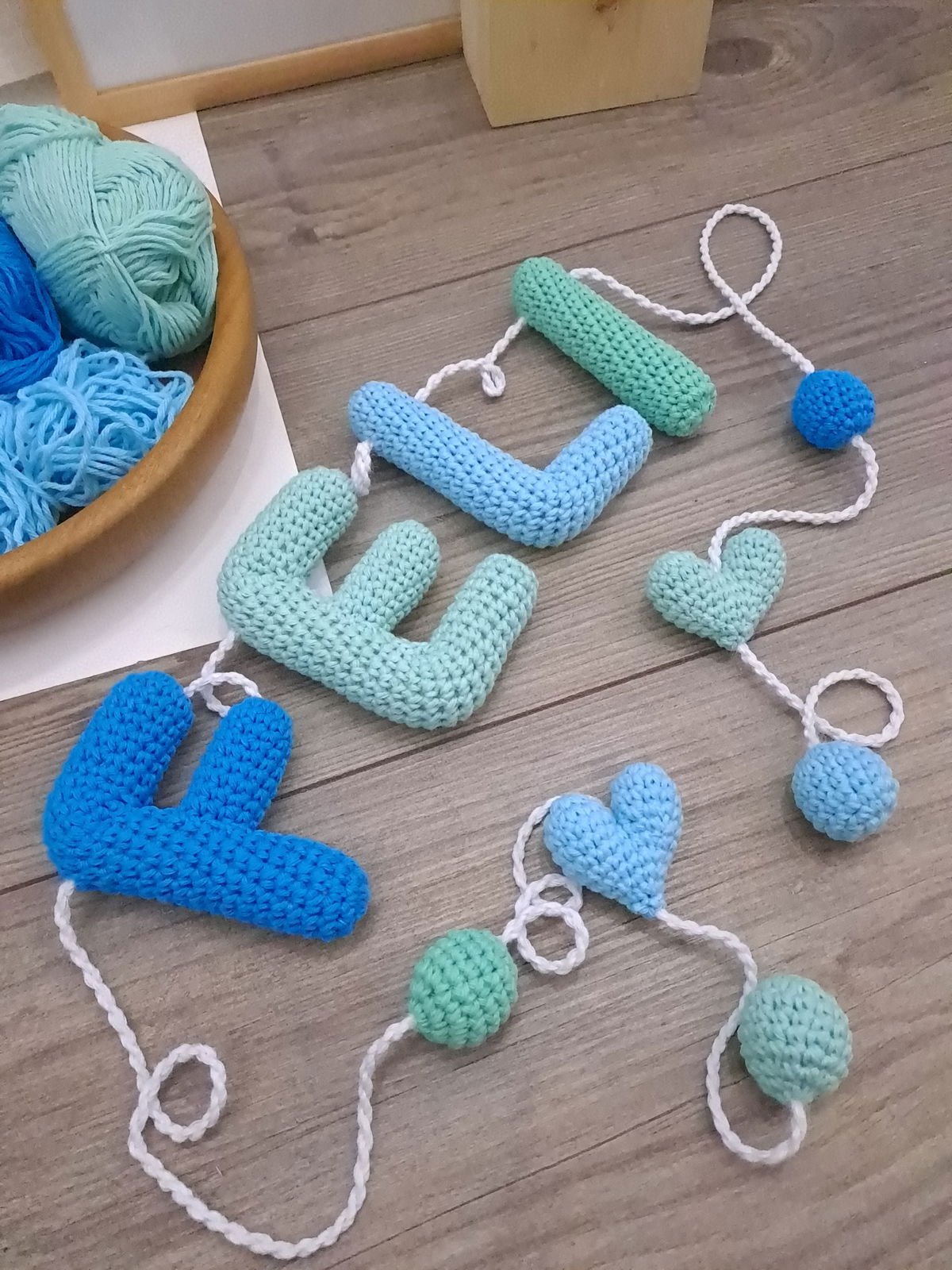 Guirnalda con nombre tejido a mano de 4 Letras.
