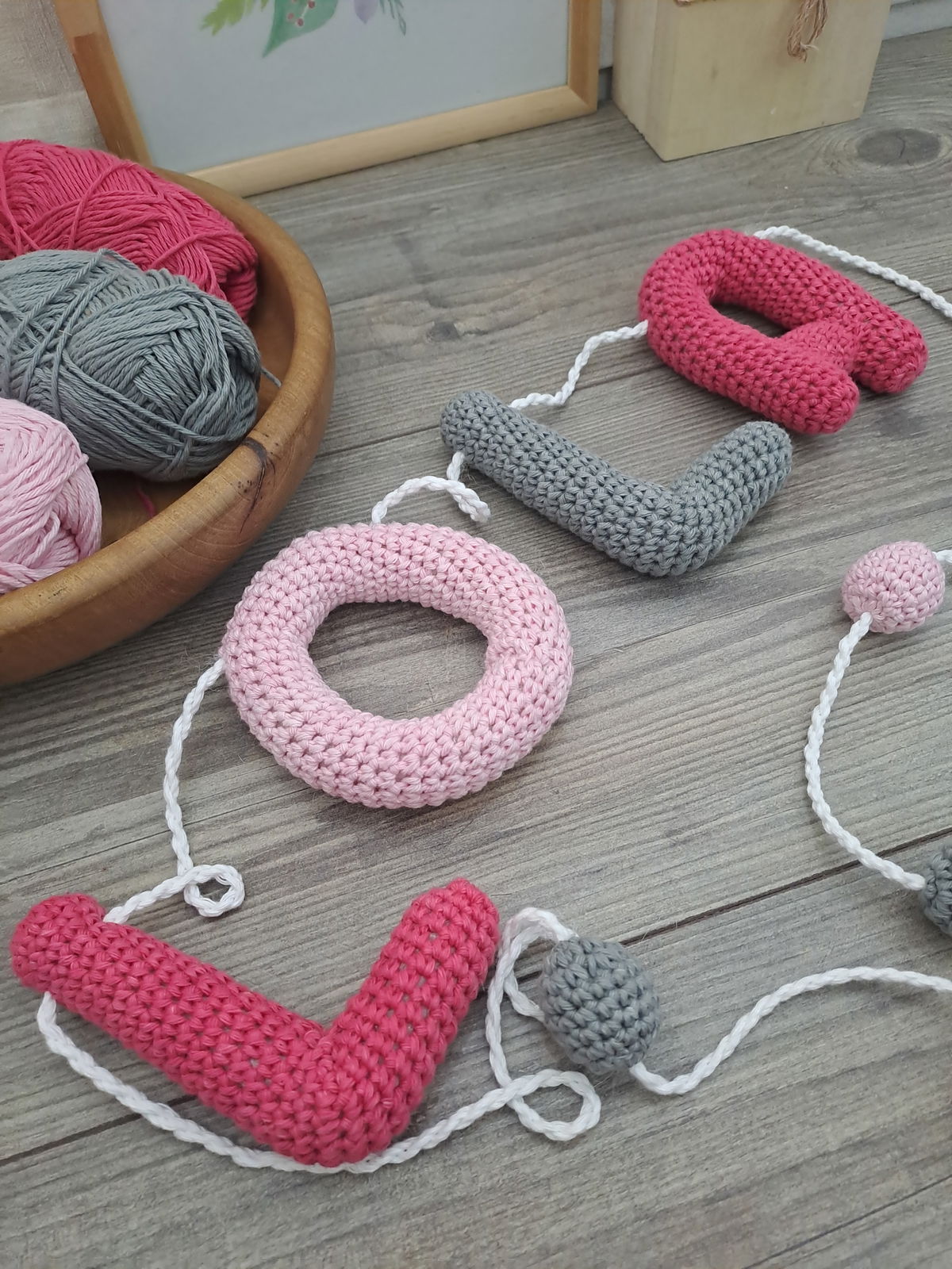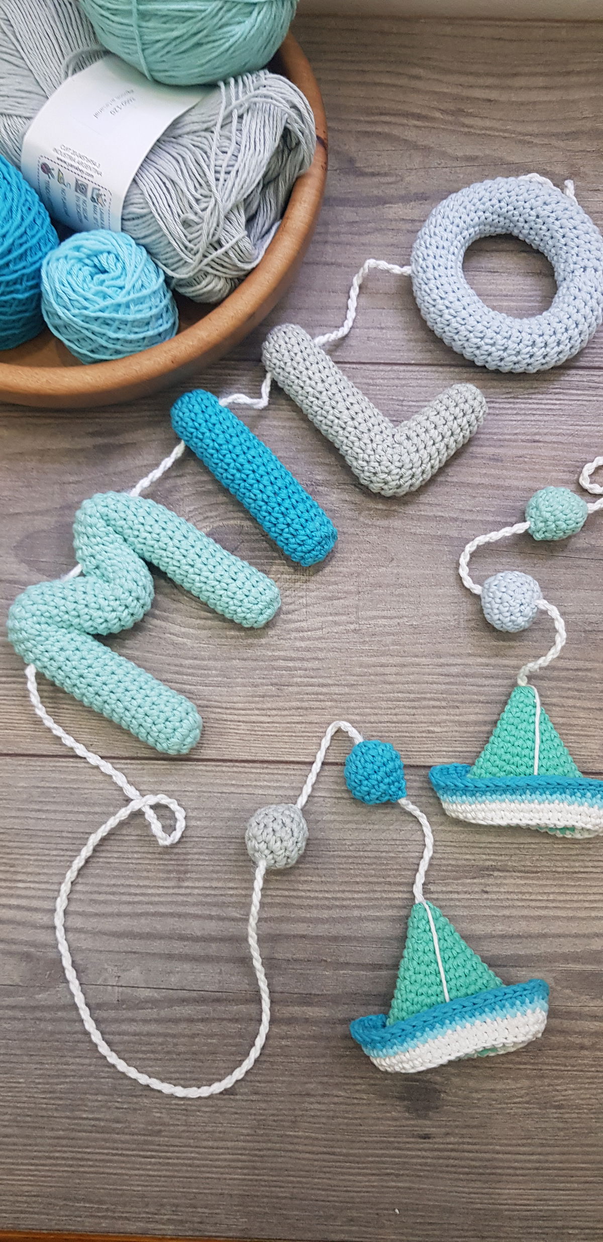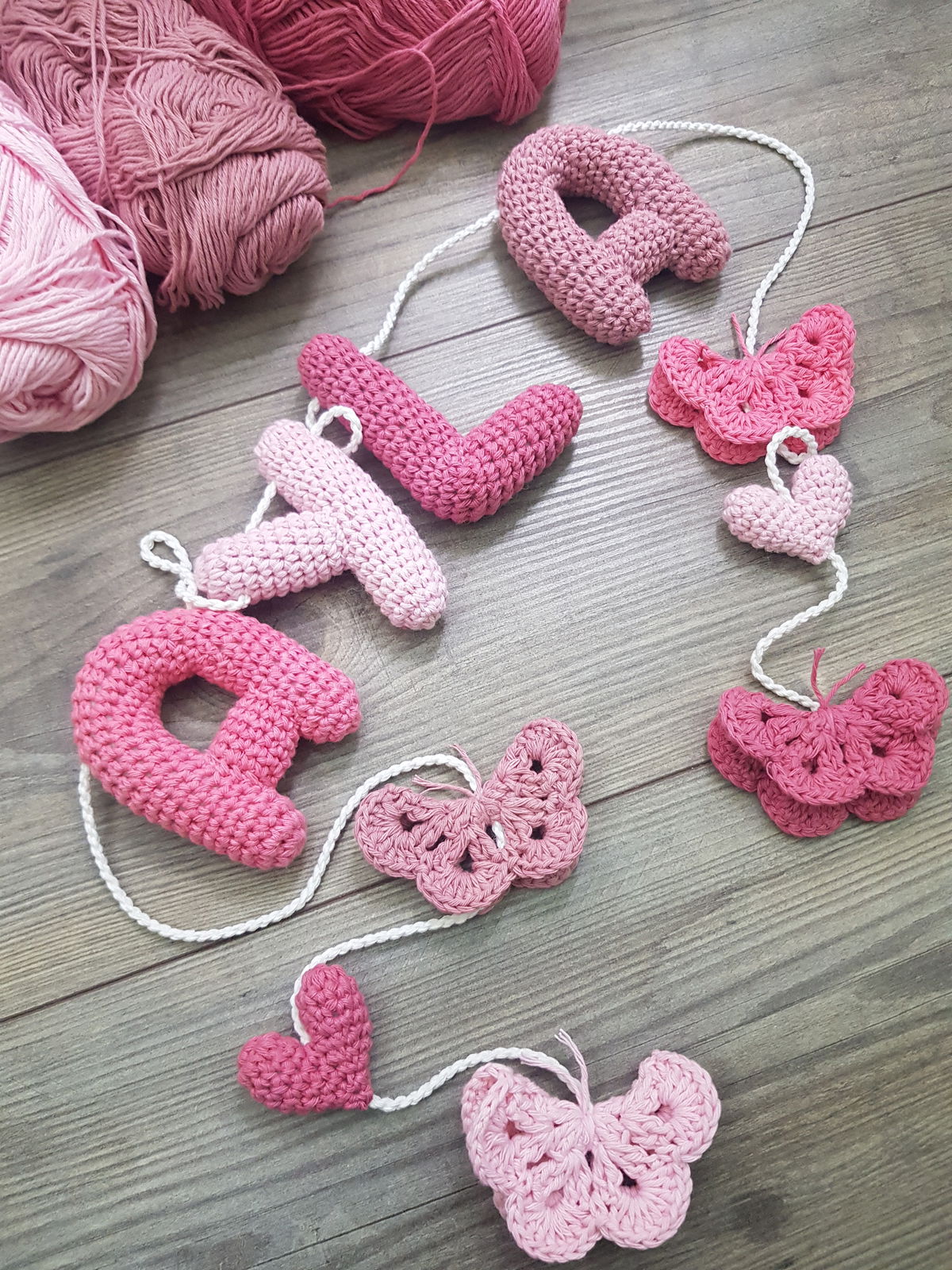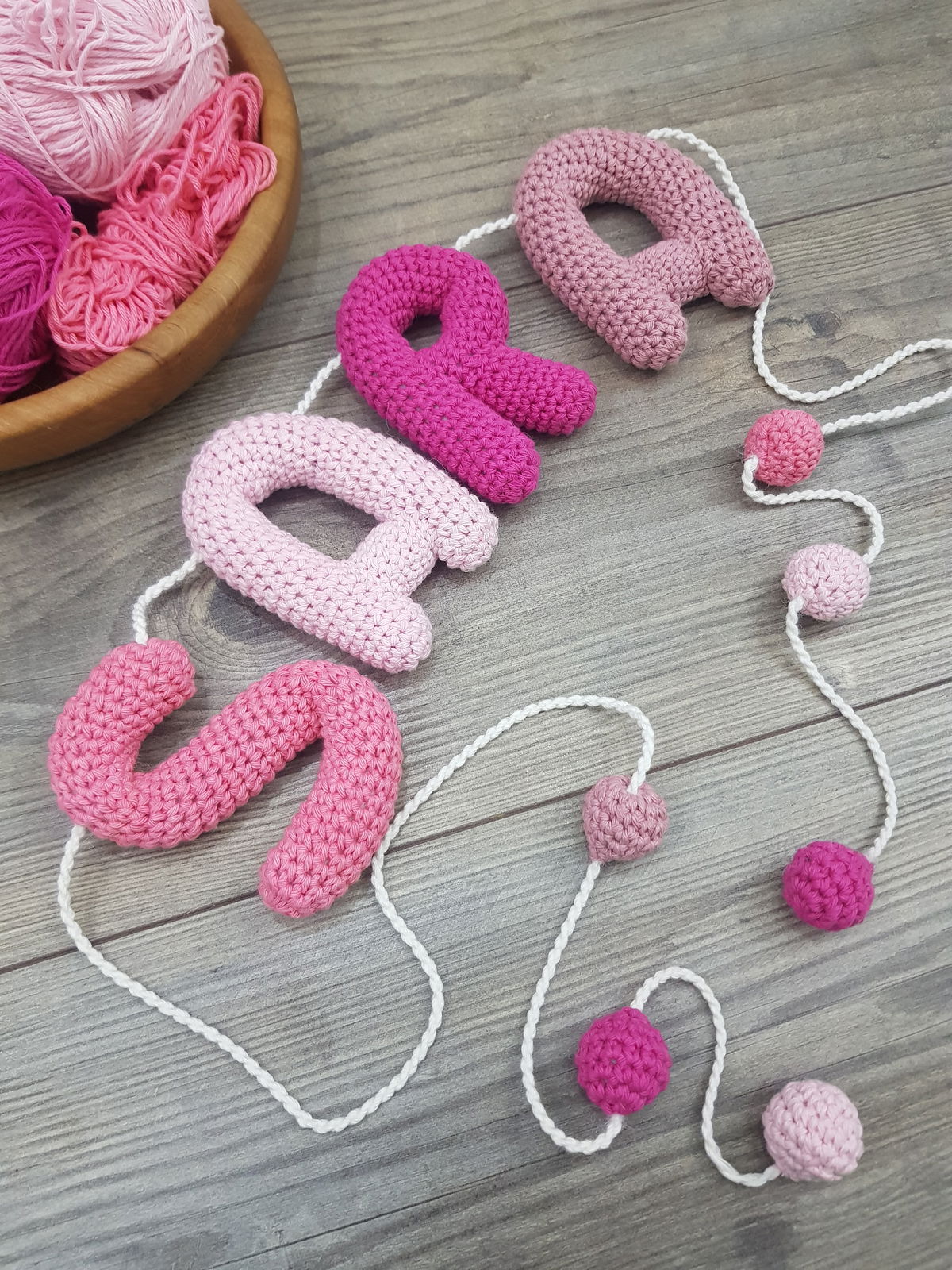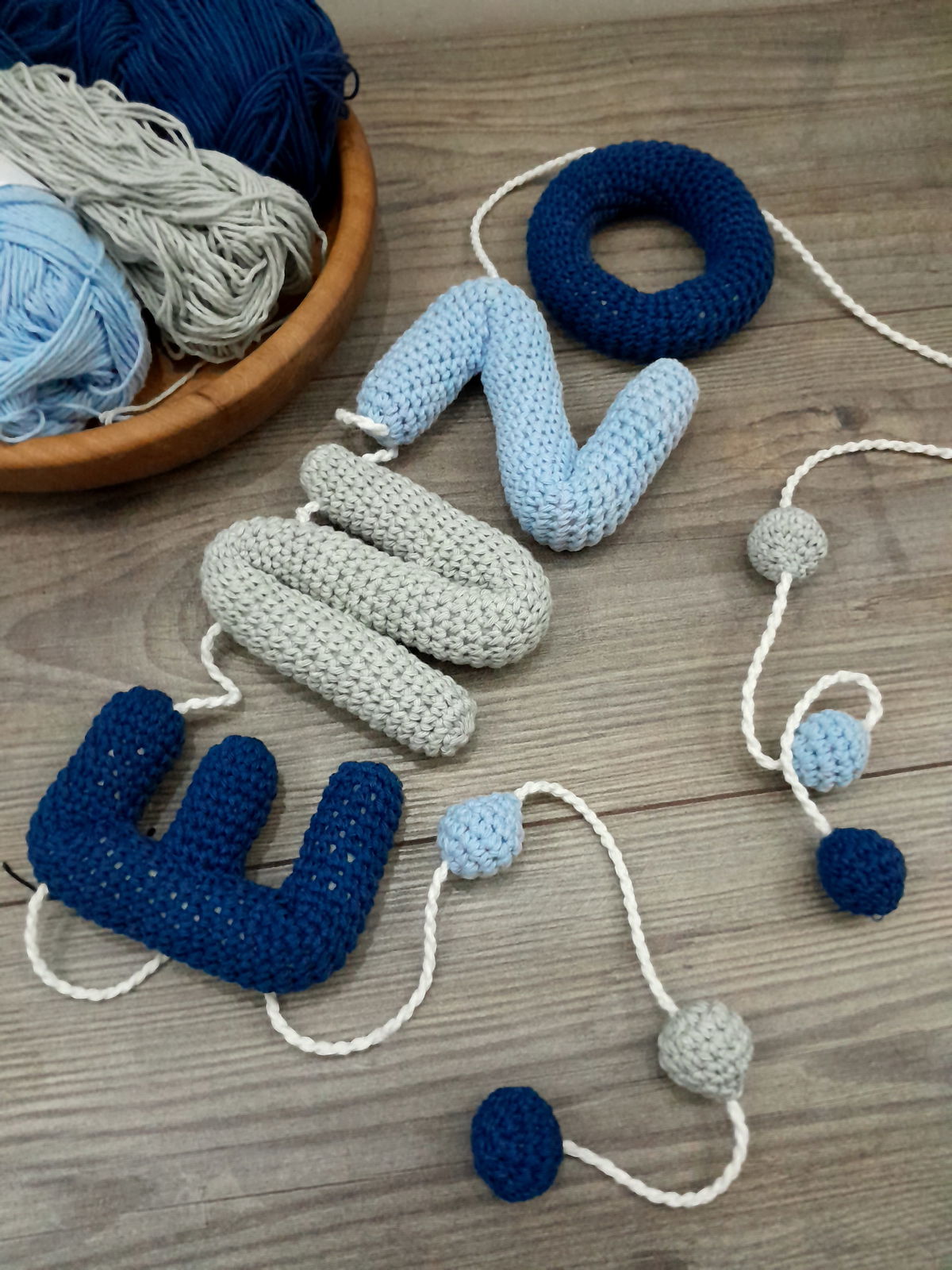 Guirnalda con nombre tejido a mano de 4 Letras.