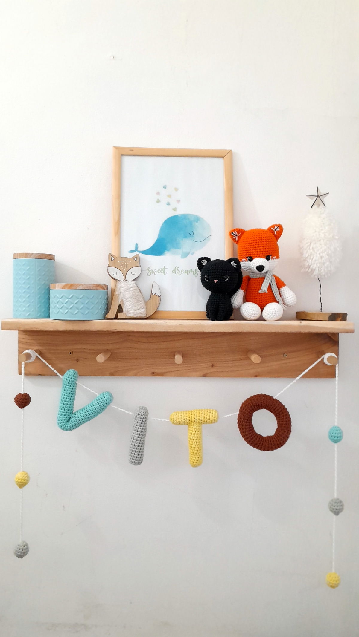 Personalizable con el nombre de tu bebé y los colores que más te gusten. Perfecto como decoración de habitaciones infantiles o regalo de nacimiento y baby shower.