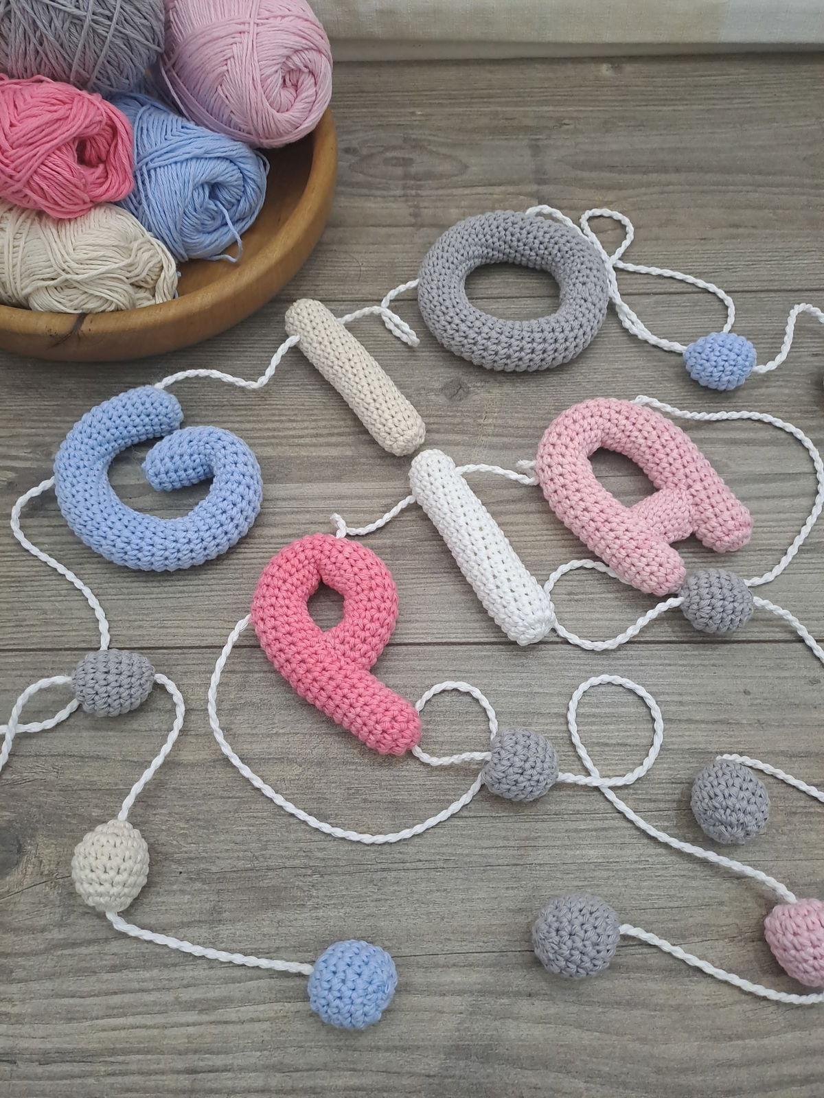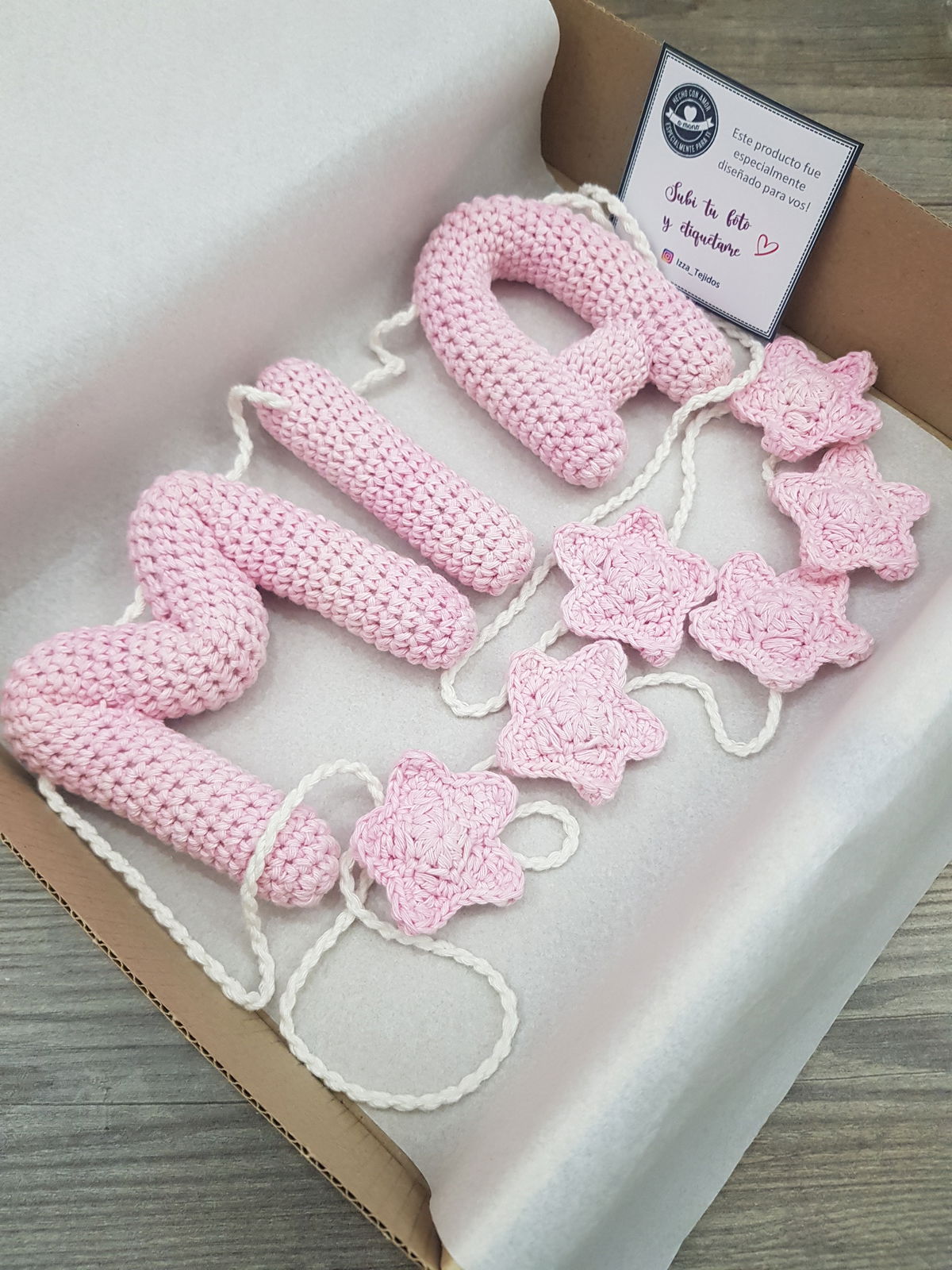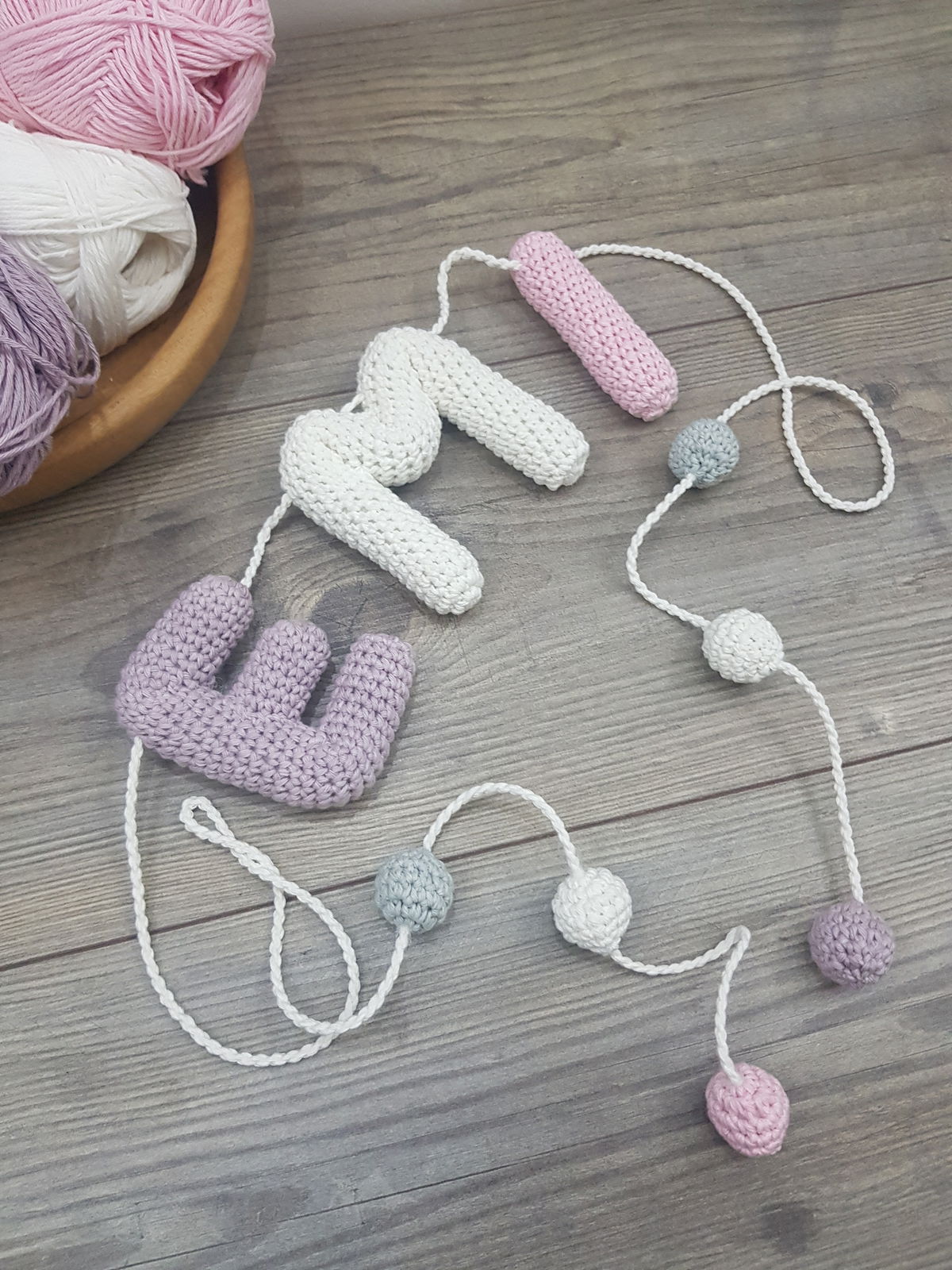 Guirnalda con nombre tejido a mano de 3 Letras.