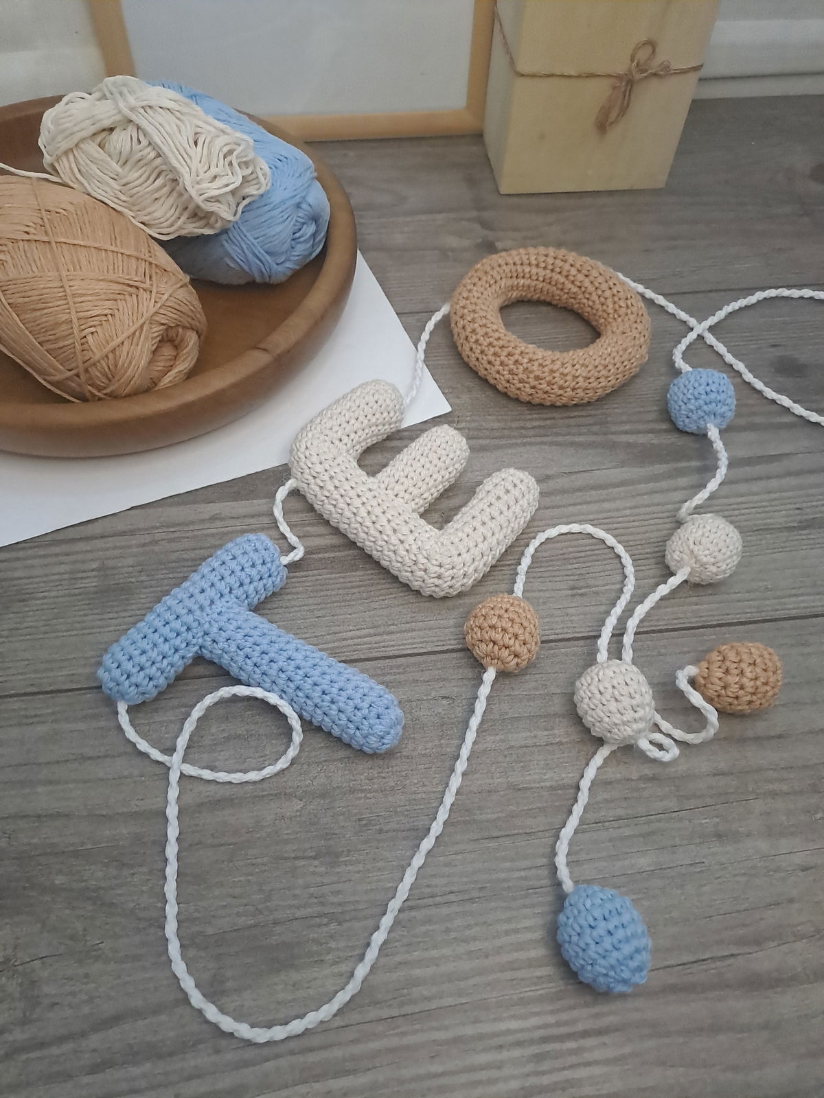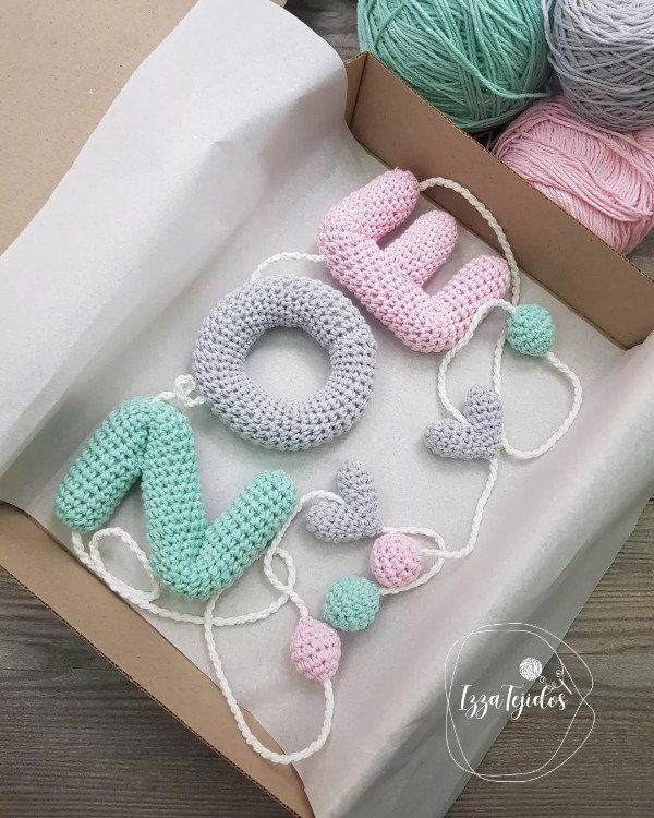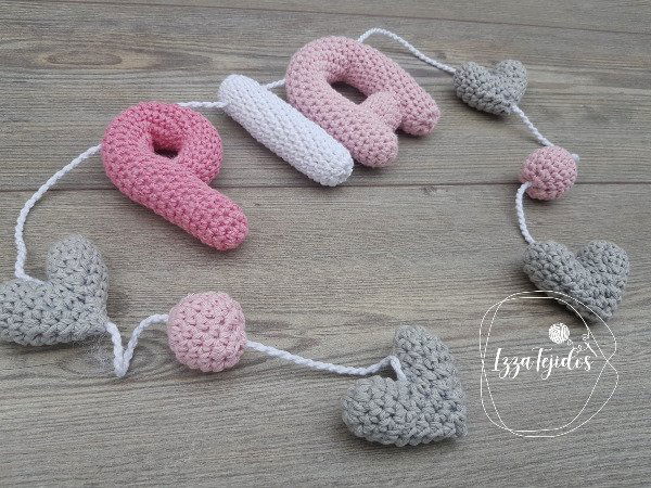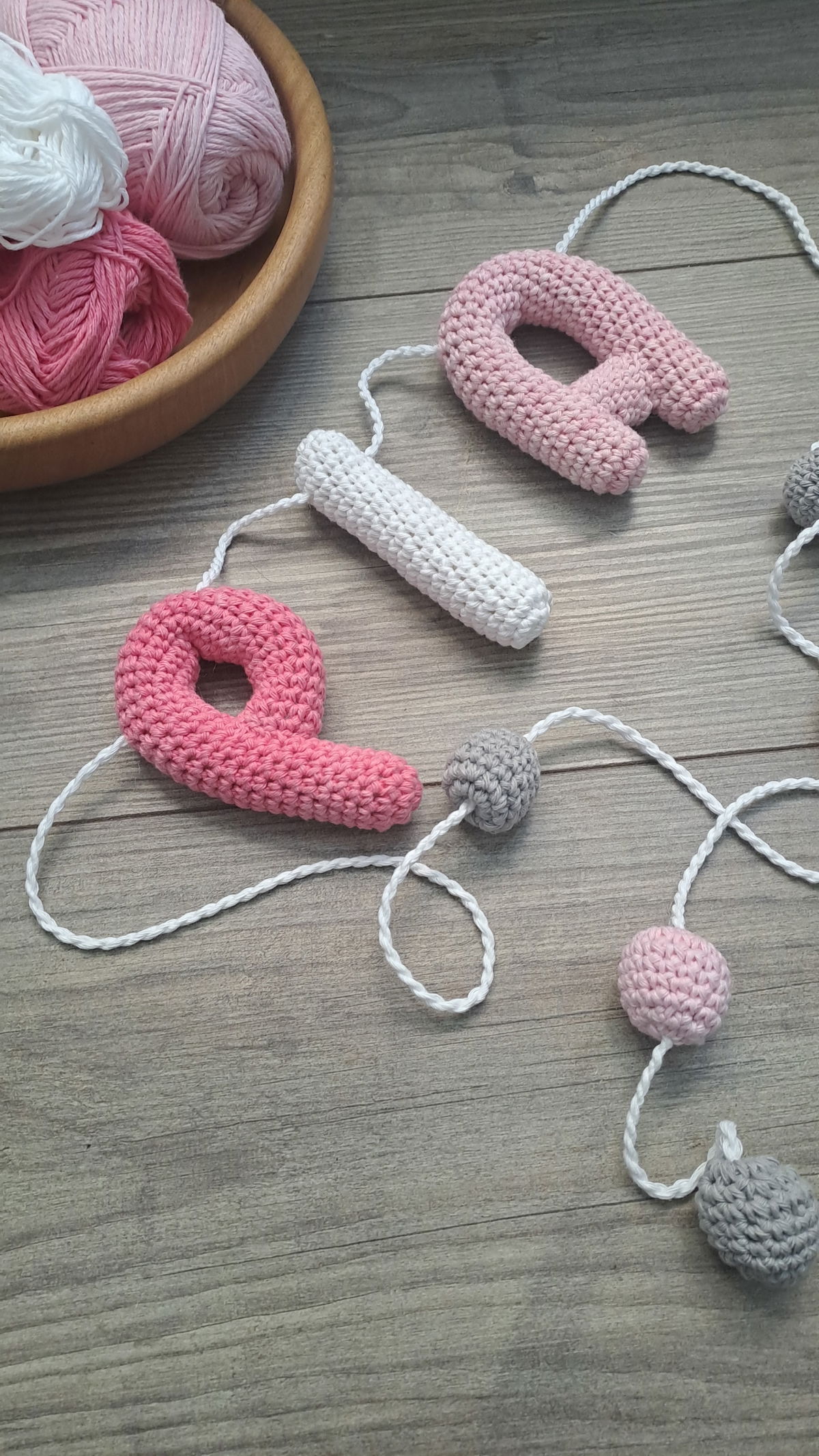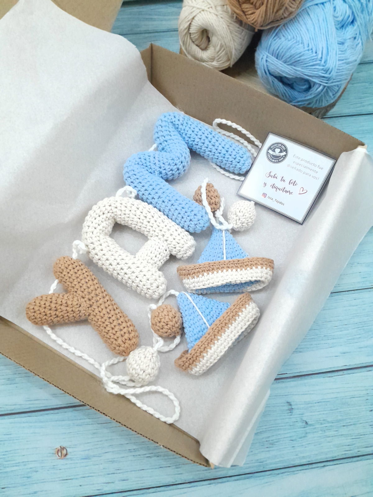 Guirnalda con nombre tejido a mano de 3 Letras.