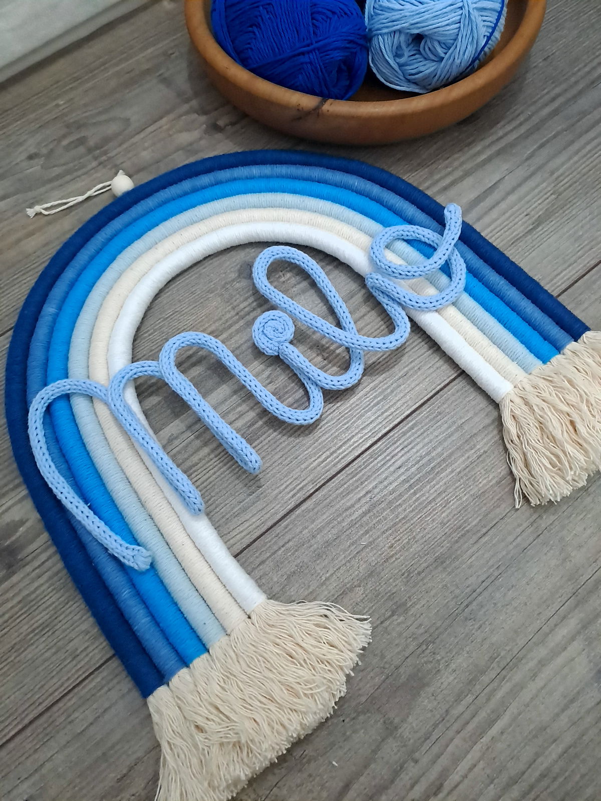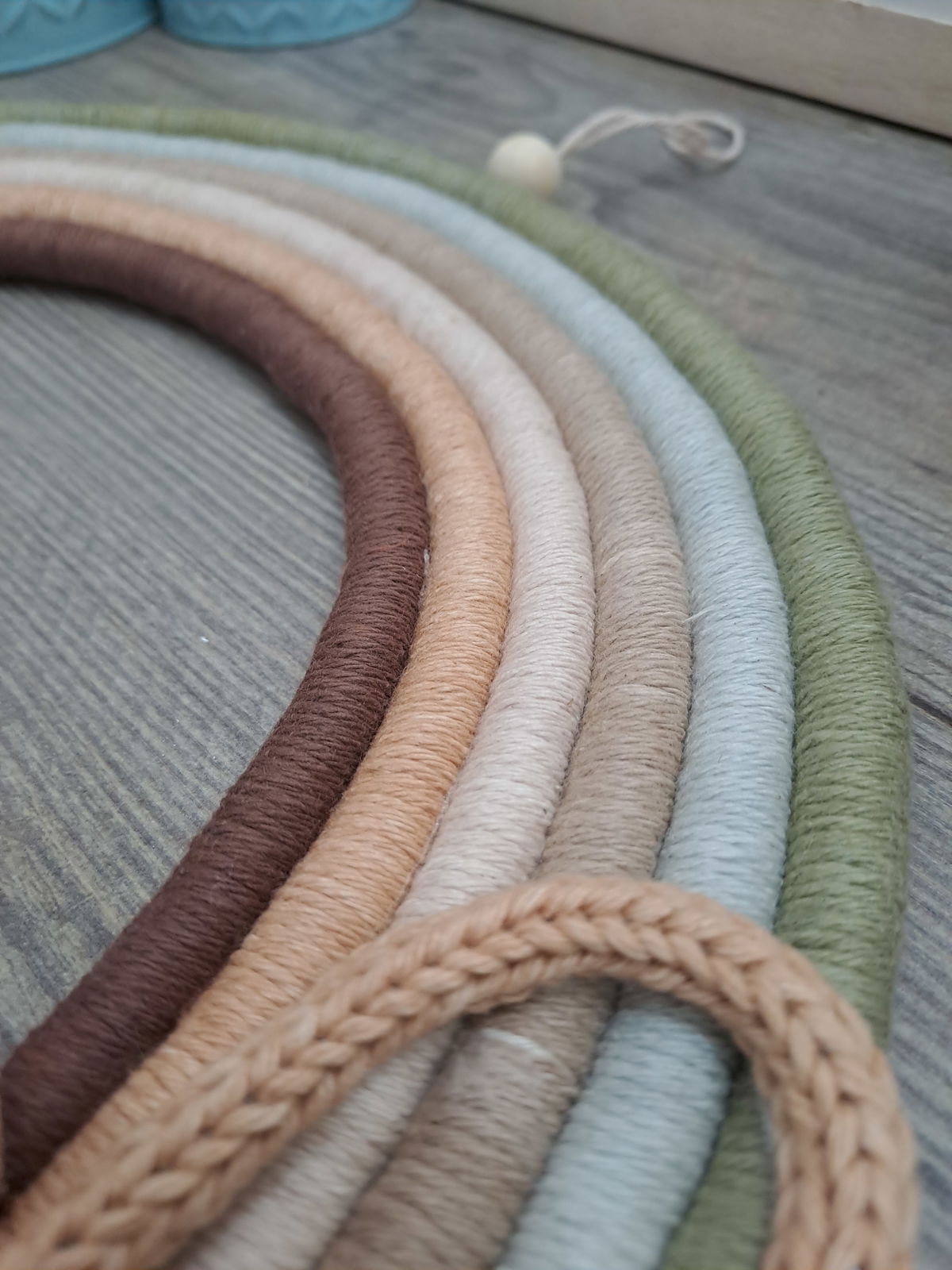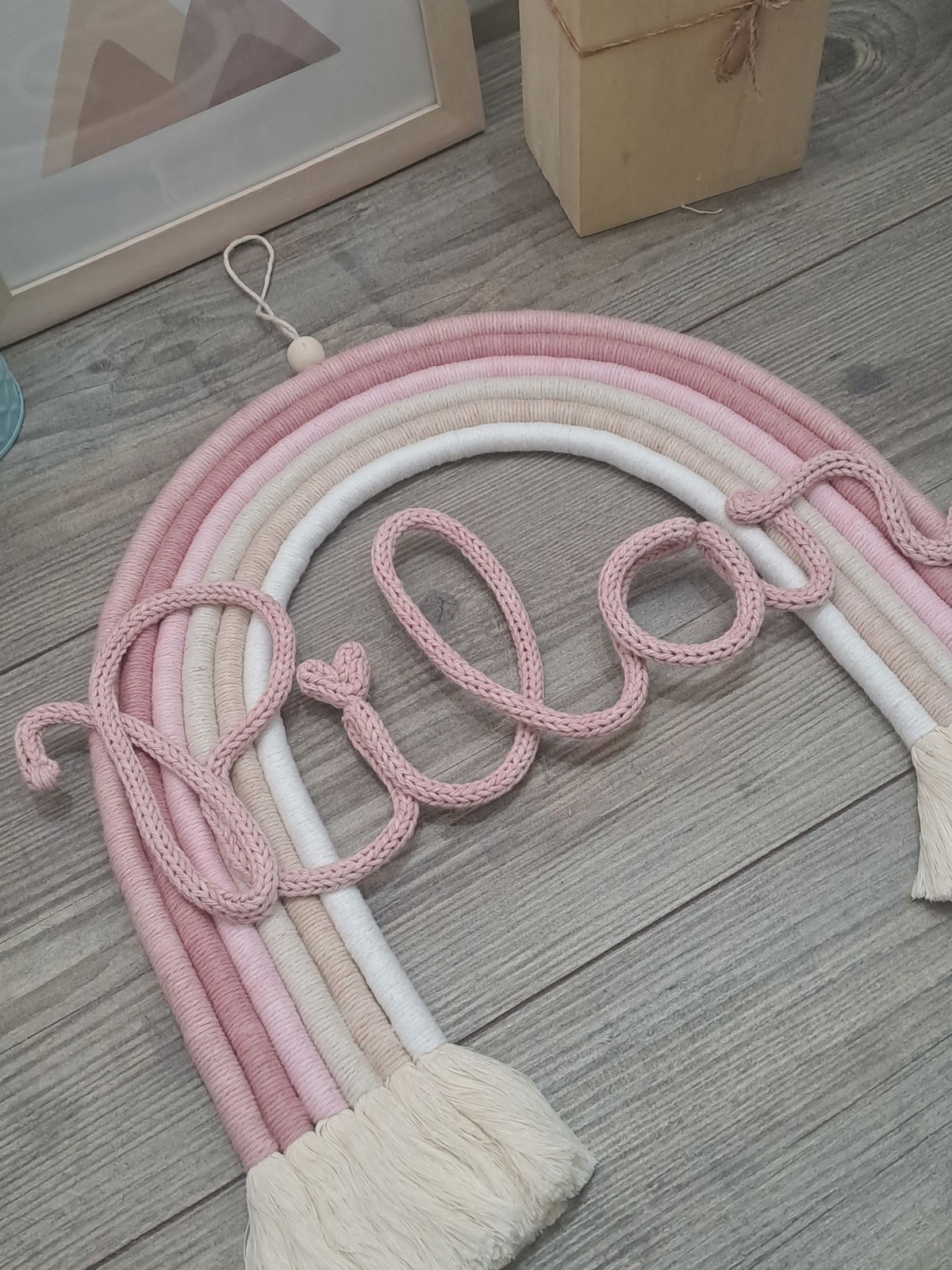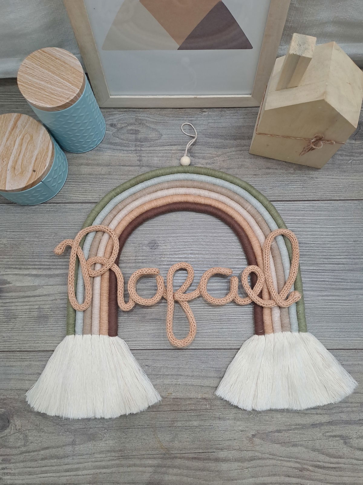 Arcoiris de 6 colores, con nombre de alambre forrado en cordón tejido.