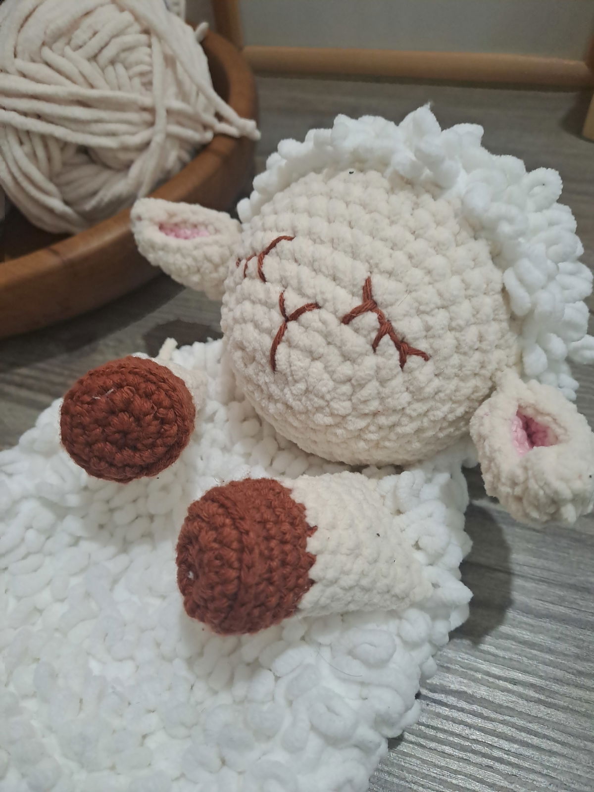 Realizada en chenille y en hilo de algodón. Relleno de vellón siliconado.