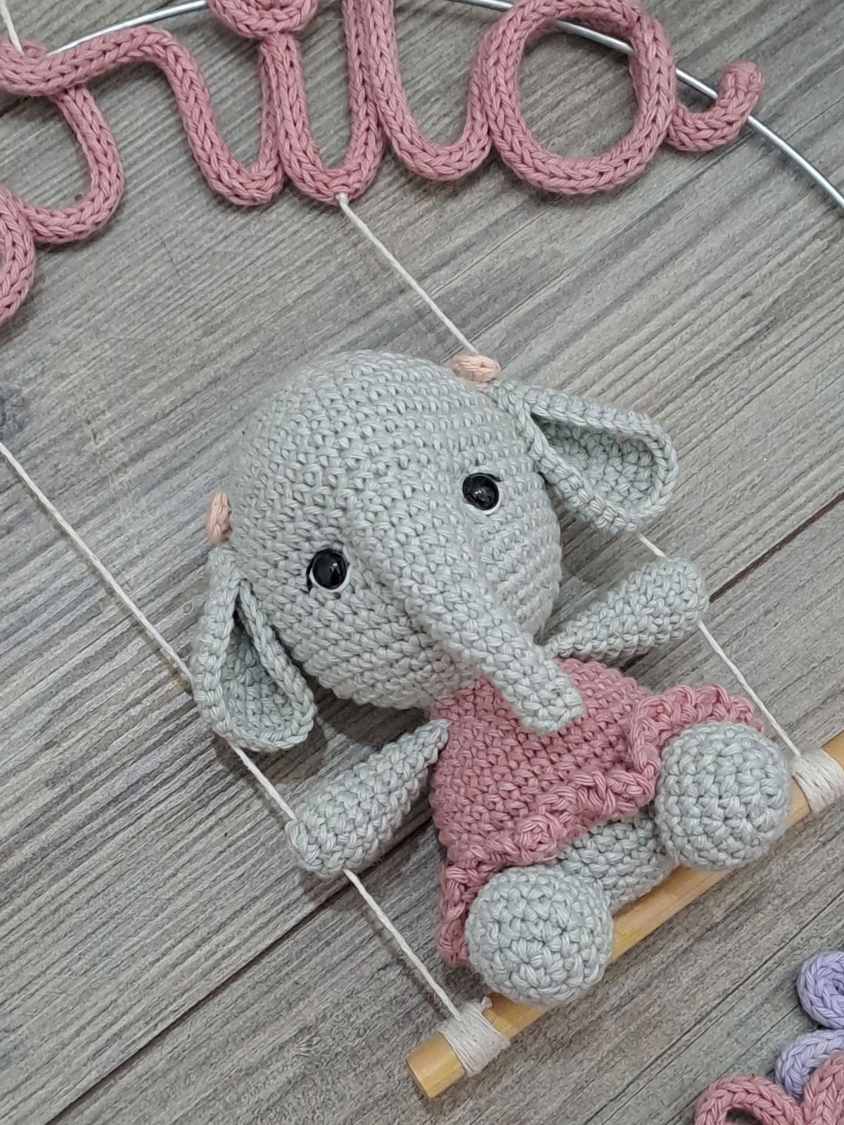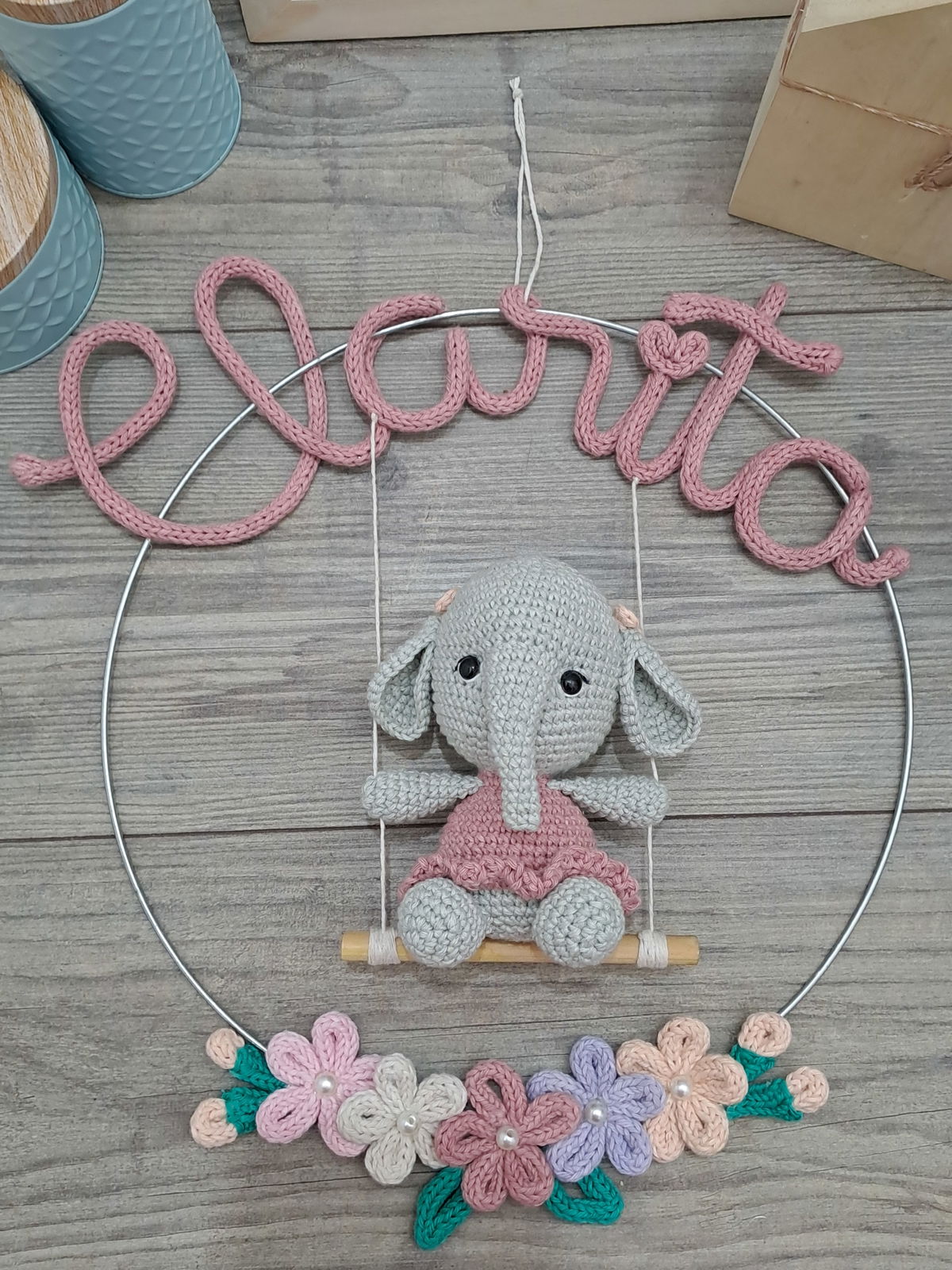Nombre en aro con elefante y flores