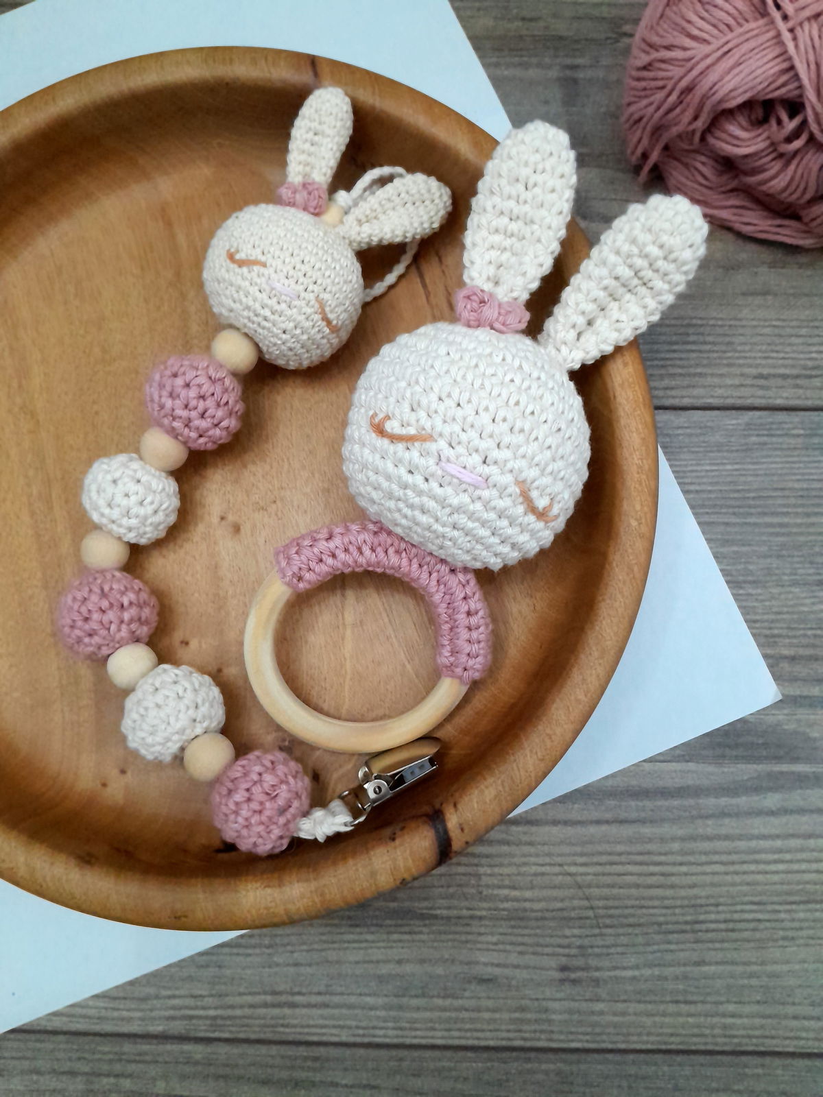 Set Conejitos Regi y Lale: Manta de apego de conejito + sonajero + portachupete
