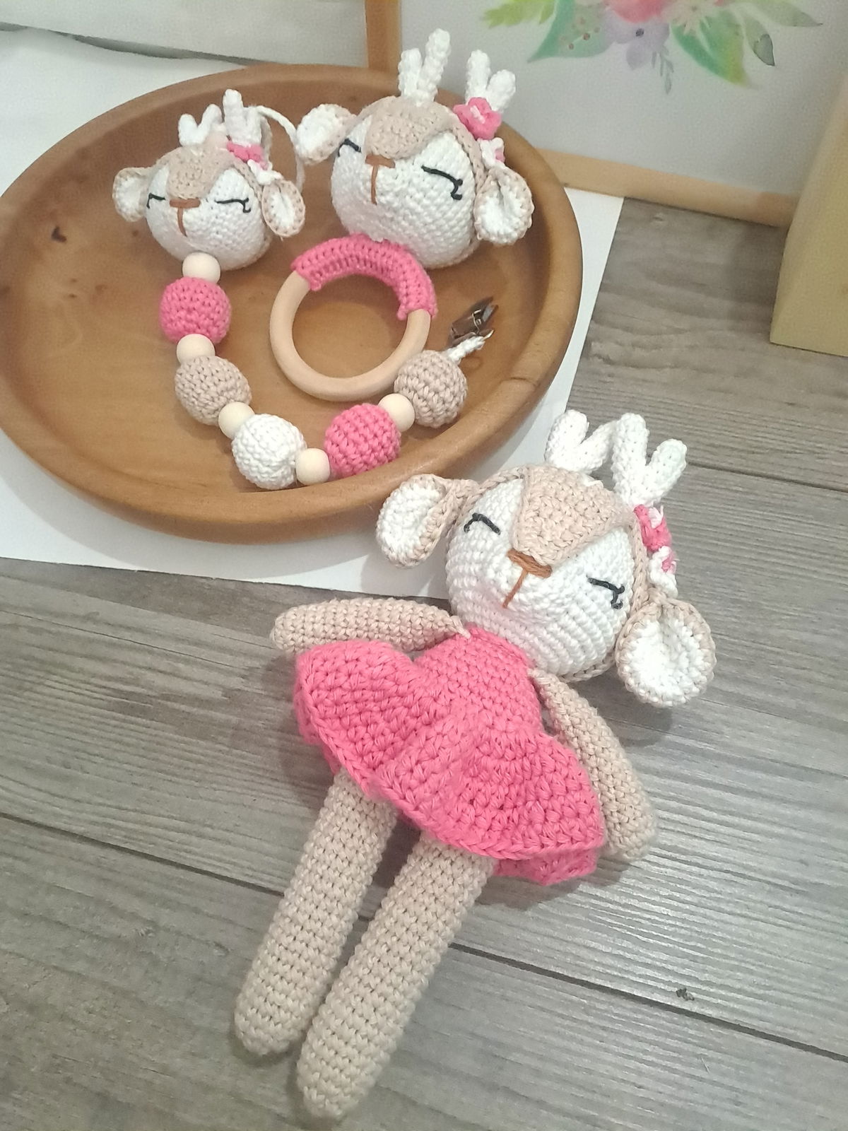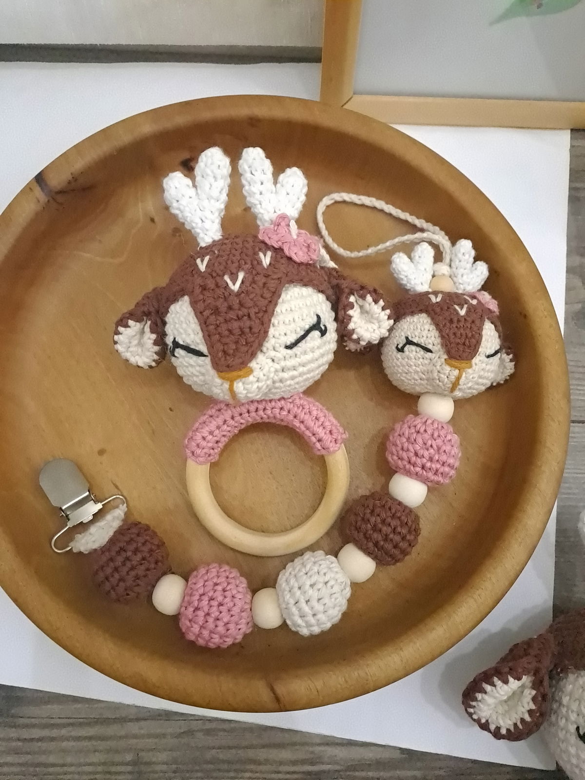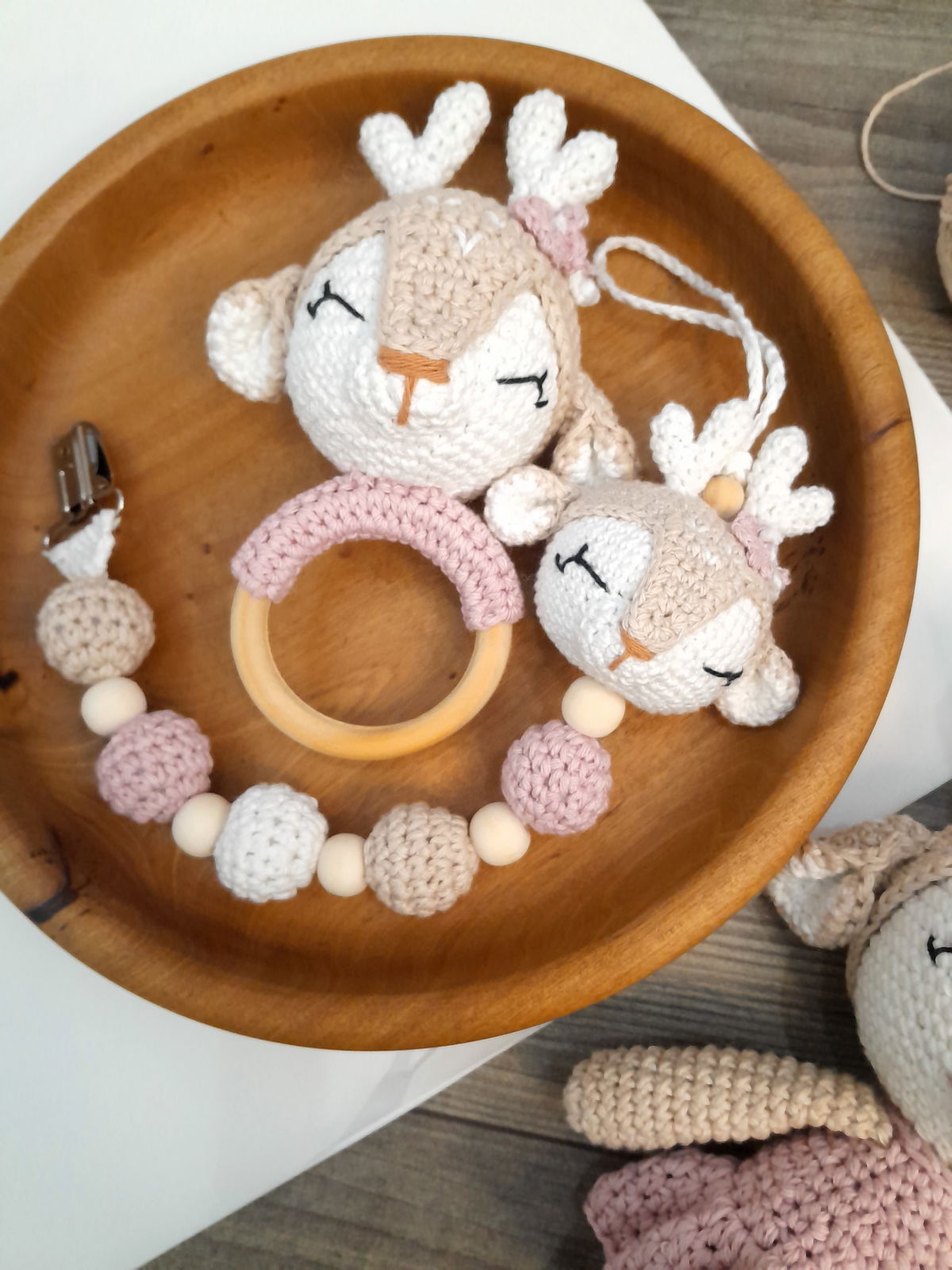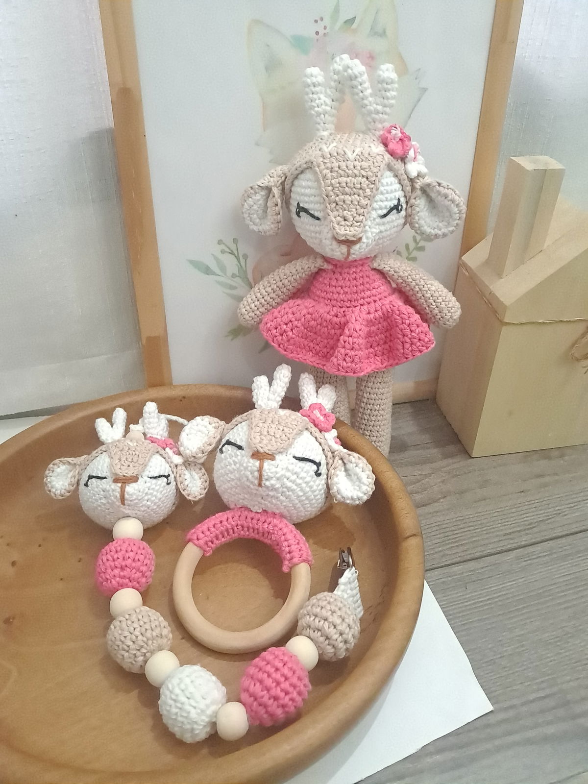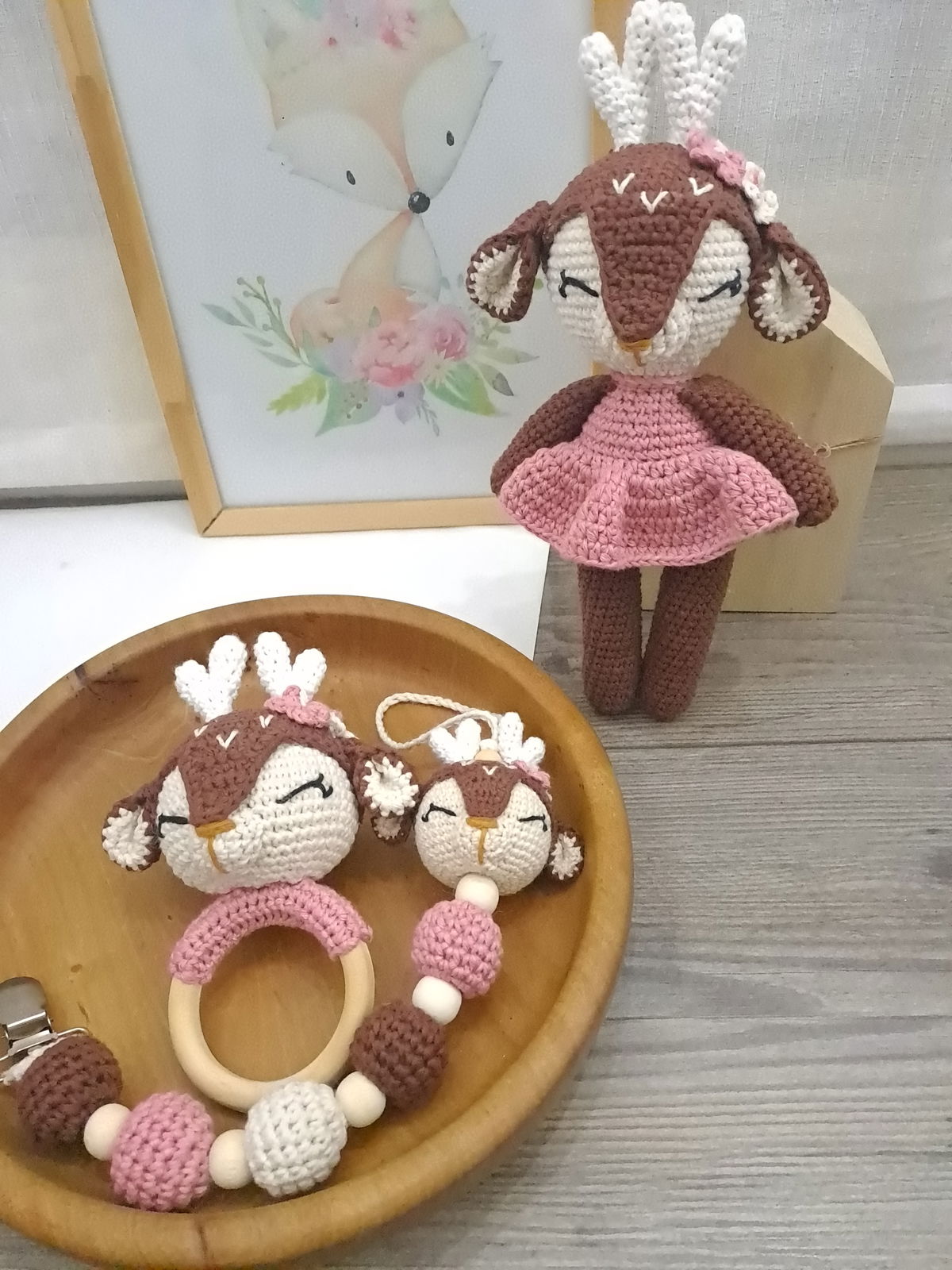 Set ciervita Lola: muñeco de apego + sonajero + portachupete