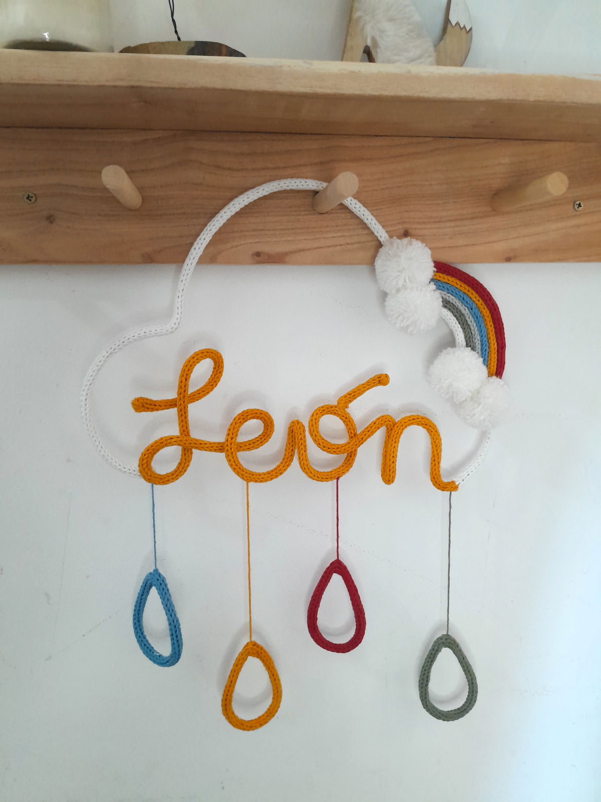 Adicional para los nombres de alambre forrado, correspondiente a una nube con un arcoiris al rededor del nombre, y 4 gotas colgando abajo.