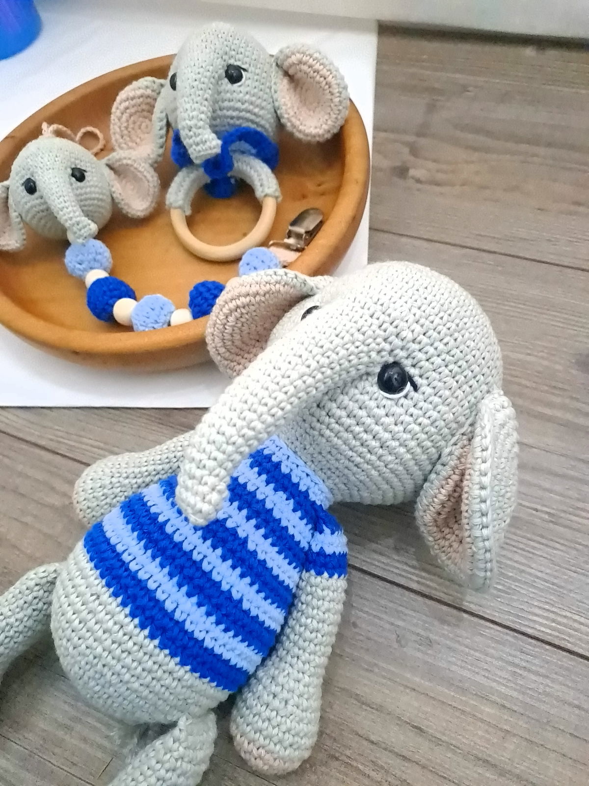 Set Elefante Noah: muñeco de apego + sonajero + portachupete
